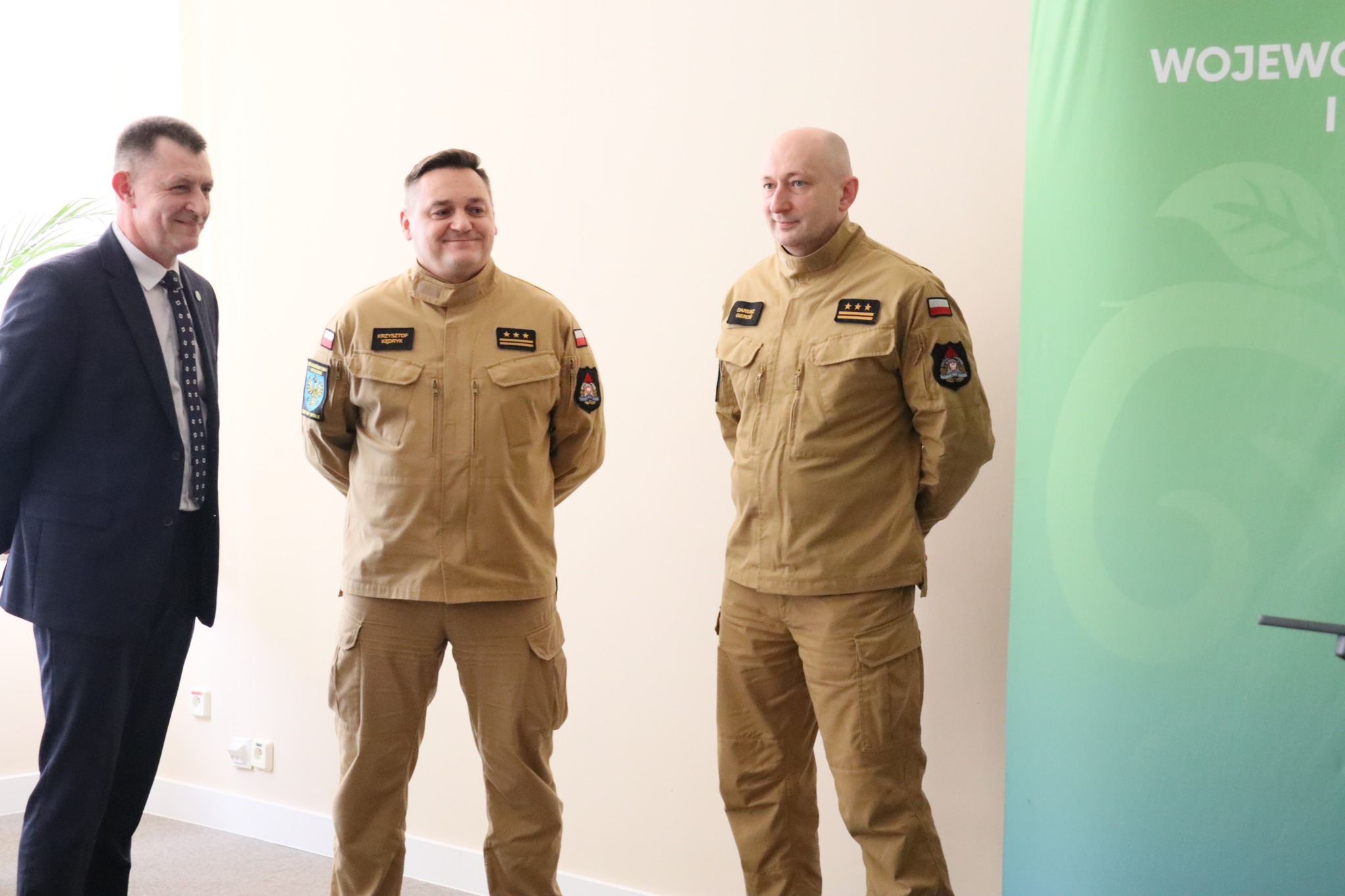 W briefingu wziął udział Pan Sławomir Kłosowski Wojewoda Opolski, Pan Jerzy Naszkiewicz Zastępca Prezesa Zarządu WFOŚiGW w Opolu, st. bryg. Krzysztof Kędryk Opolski Komendant Wojewódzki PSP oraz st. bryg. Dariusz Gieroń Zastępca Opolskiego Komendanta Wojewódzkiego PSP.