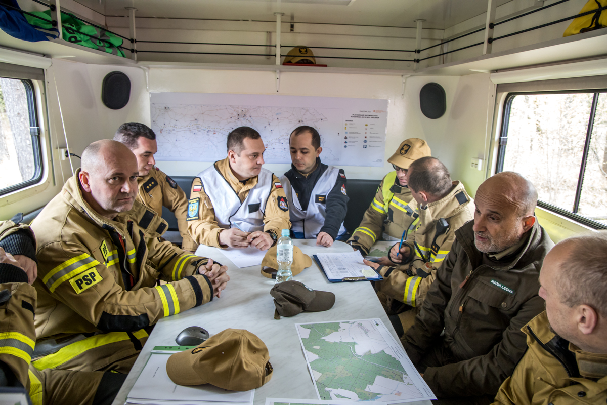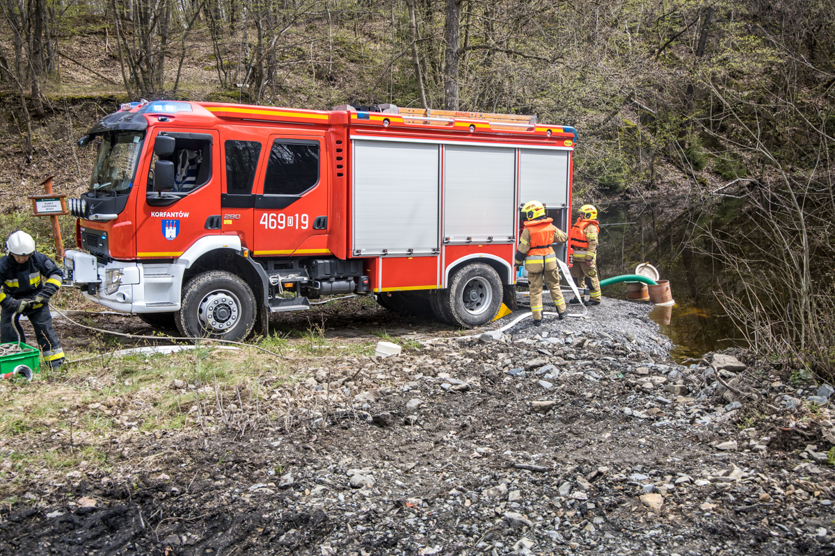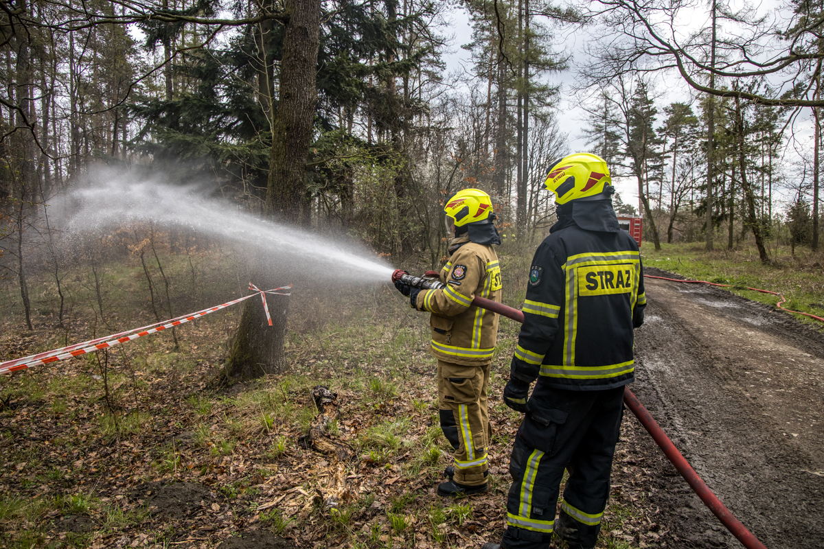 Pożar ćwiczebny powstał na obszarze około 1 hektara terenu leśnego, stwarzając realne zagrożenie dla kolejnych oddziałów leśnych. Scenariusz ćwiczeń zakładał przygotowanie przez strażaków linii obrony na froncie pożaru. Koniecznym było zbudowanie magistrali wodnej. Korzystano z pompy wysokiej wydajności, pomp pływających, zbiorników typu tanker oraz autopomp samochodów pożarniczych. Podjęto skuteczną próbę zapewnienia wody do celów przeciwpożarowych systemem „dowożenia”.