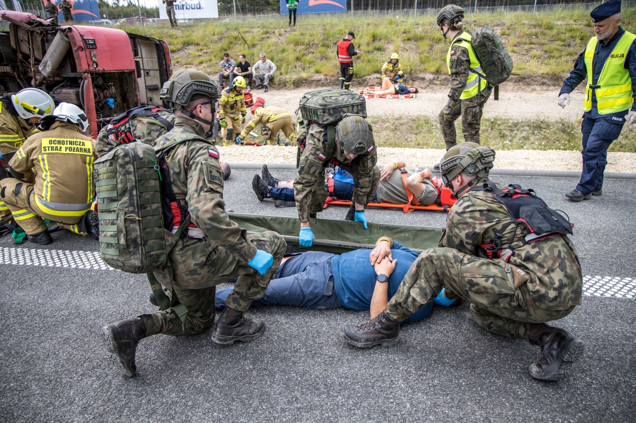 - sprawdzenie umiejętności udzielania kwalifikowanej pierwszej pomocy podczas wypadku masowego,