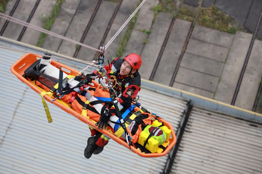 Przebieg ćwiczenia realizowanego przez Specjalistyczną Grupę Ratownictwa Wysokościowego „Opole” polegał na dotarciu ratowników do poszkodowanego za pomocą technik alpinistycznych, udzieleniu mu kwalifikowanej pierwszej pomocy (KPP) a następnie transporcie na dół.