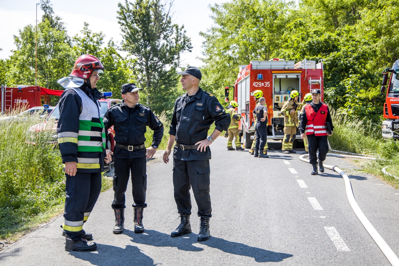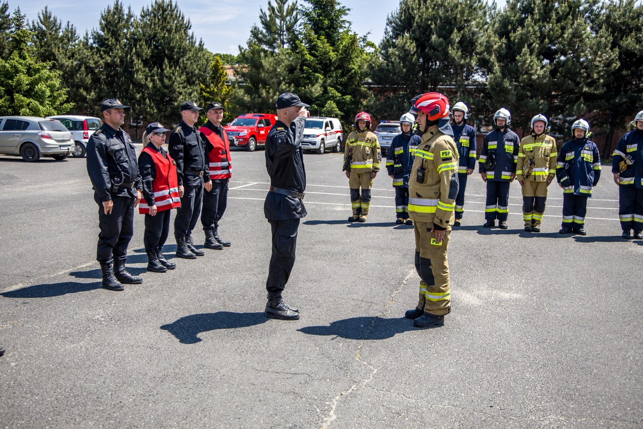 Ćwiczenia wizytował st. bryg. Arkadiusz Kuśmierski Zastępca Opolskiego Komendanta Wojewódzkiego Państwowej Straży Pożarnej w Opolu oraz st. kpt. Krzysztof Wiciak Komendant Powiatowy Państwowej Straży Pożarnej w Prudniku.
