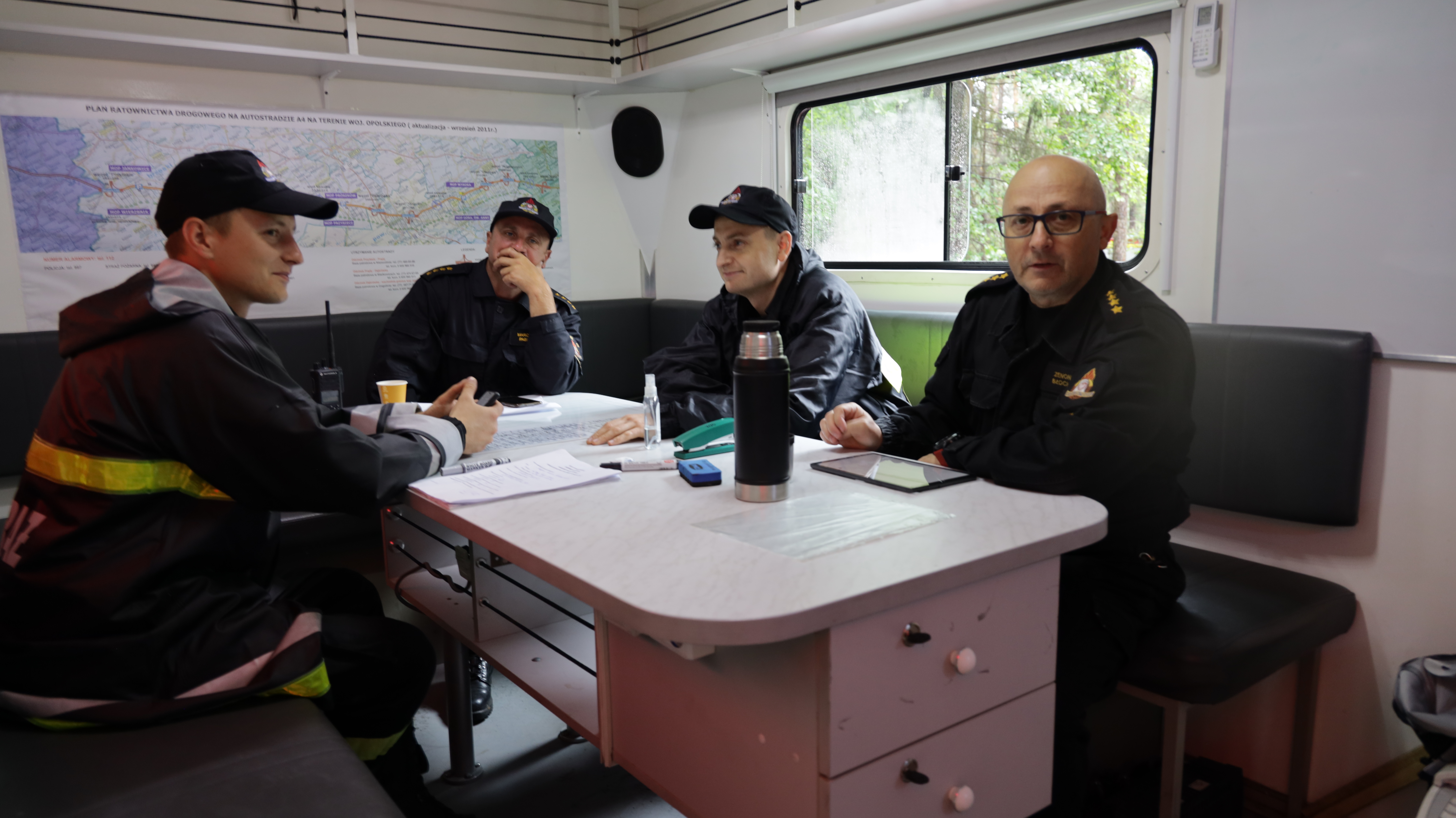 Po przyjeździe kompanii gaśniczych do punktu przyjęcia sił i środków przeprowadzono inspekcję gotowości operacyjnej przybyłych zastępów. Zespół inspekcyjny Komendy Wojewódzkiej PSP w Opolu bardzo dobrze ocenił przygotowanie obu kompanii do działań.