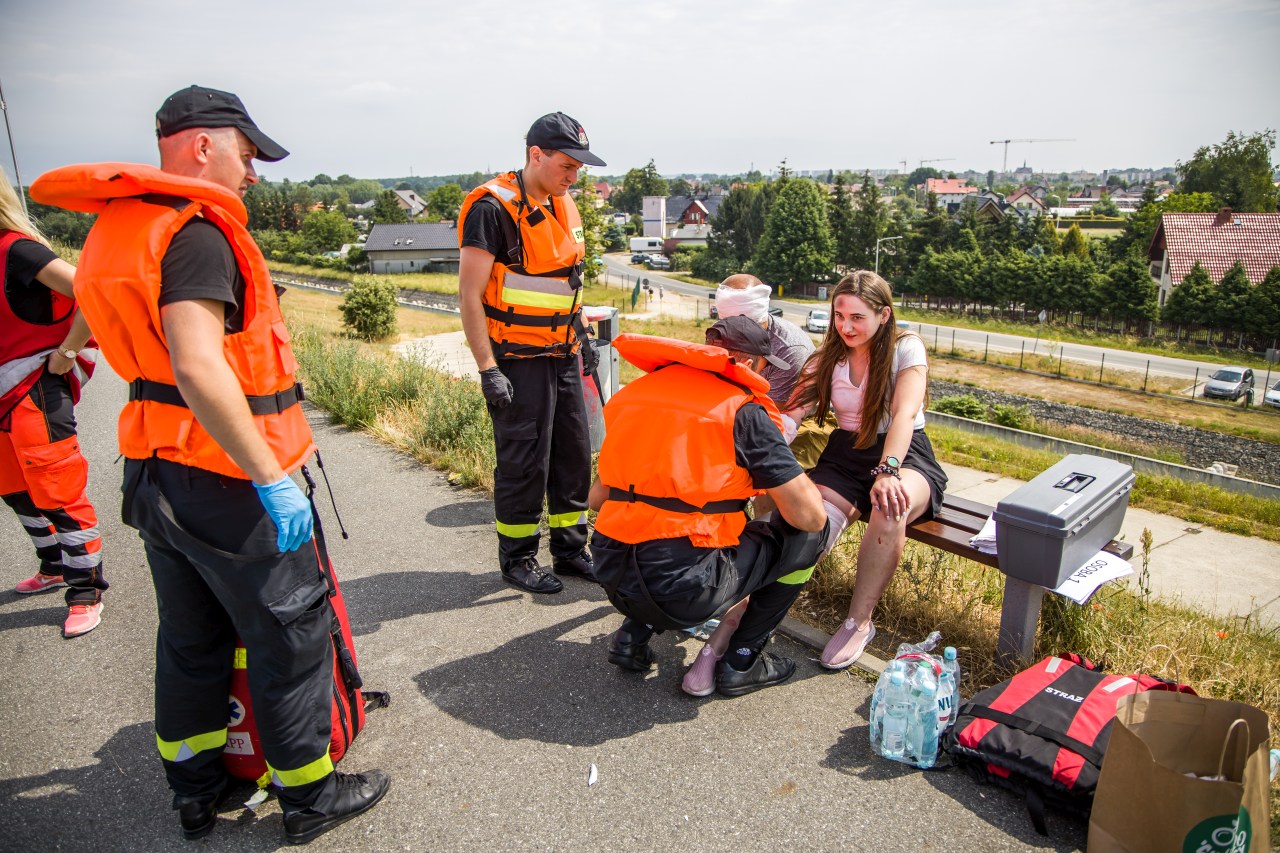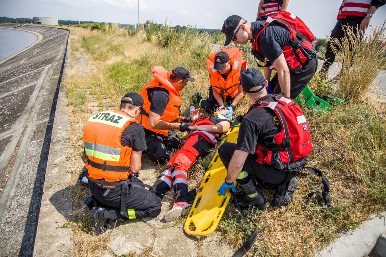- wydobyciu poszkodowanego na powierzchnię, przetransportowaniu na brzeg oraz udzieleniu KPP.