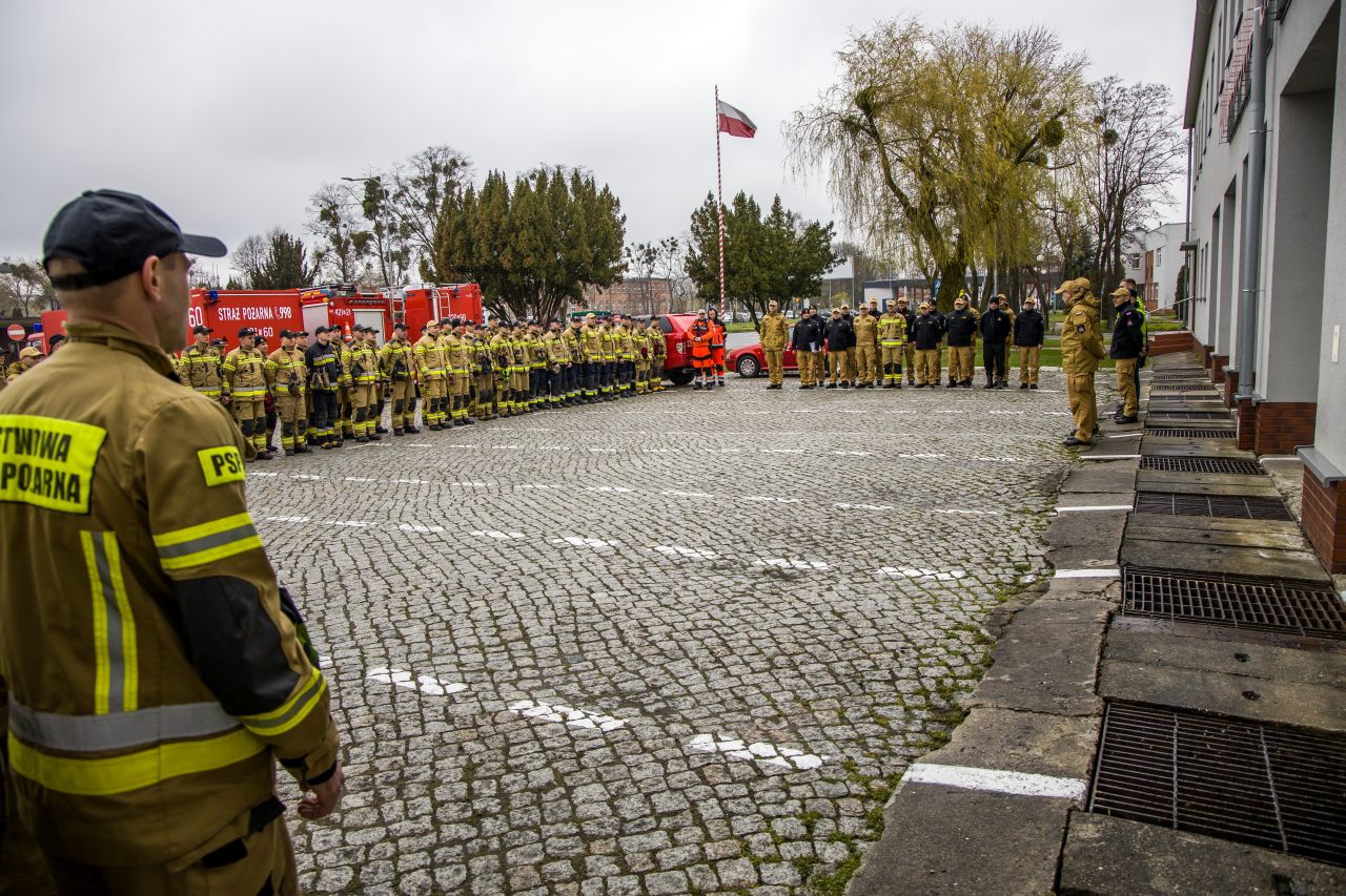 Przed ćwiczeniami na placu JRG 1 w Kędzierzynie-Koźlu odbyła się inspekcja gotowości operacyjnej odwodu operacyjnego przybyłego do punktu przyjęcia sił i środków.