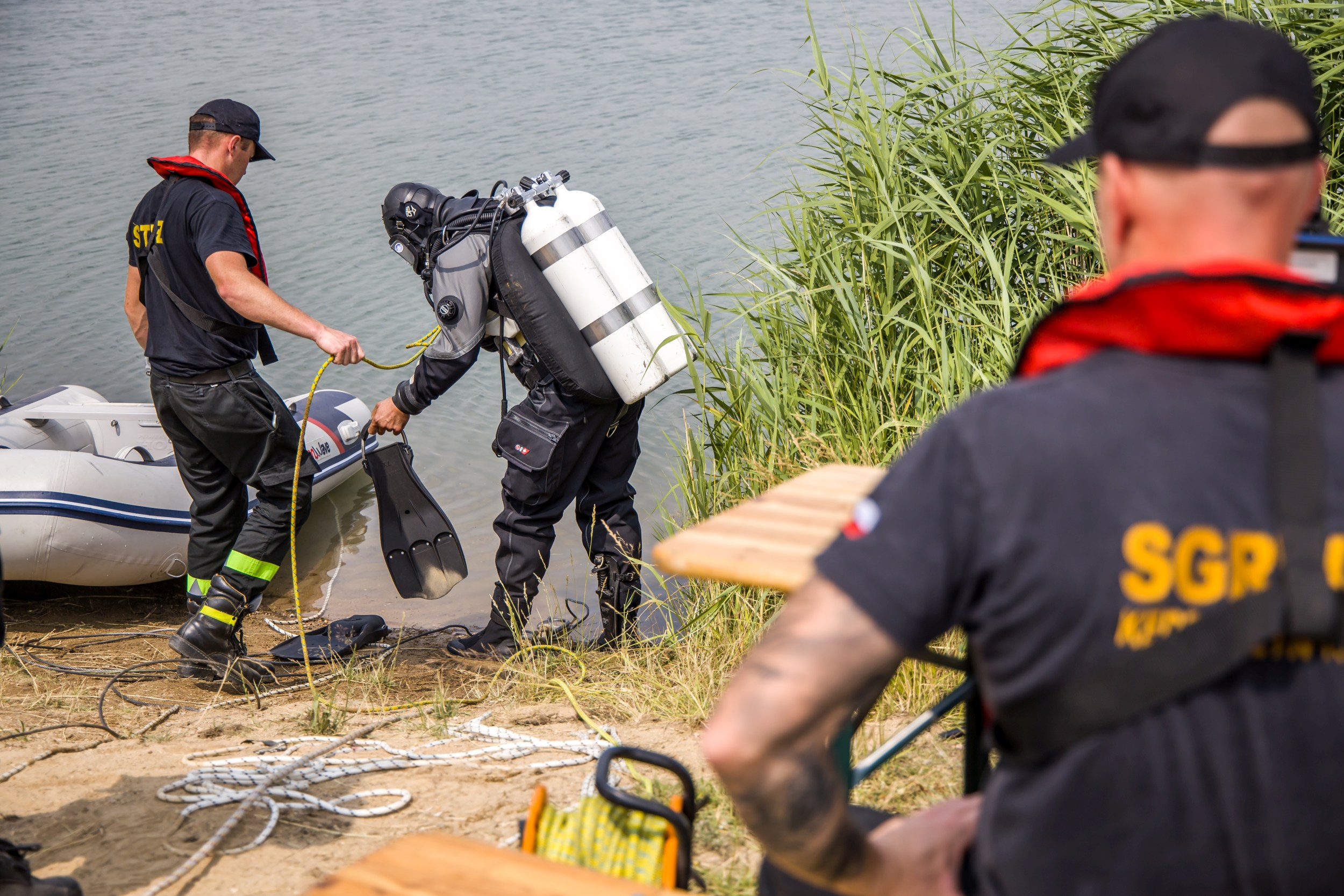 Założeniem ćwiczeń jest zlokalizowanie zatopionego obiektu przez grupę sonarową "Nysa" a następnie wyciągnięcie obiektu na brzeg akwenu przez Specjalistyczną Grupę Wodno-Nurkową COO "Opole".
