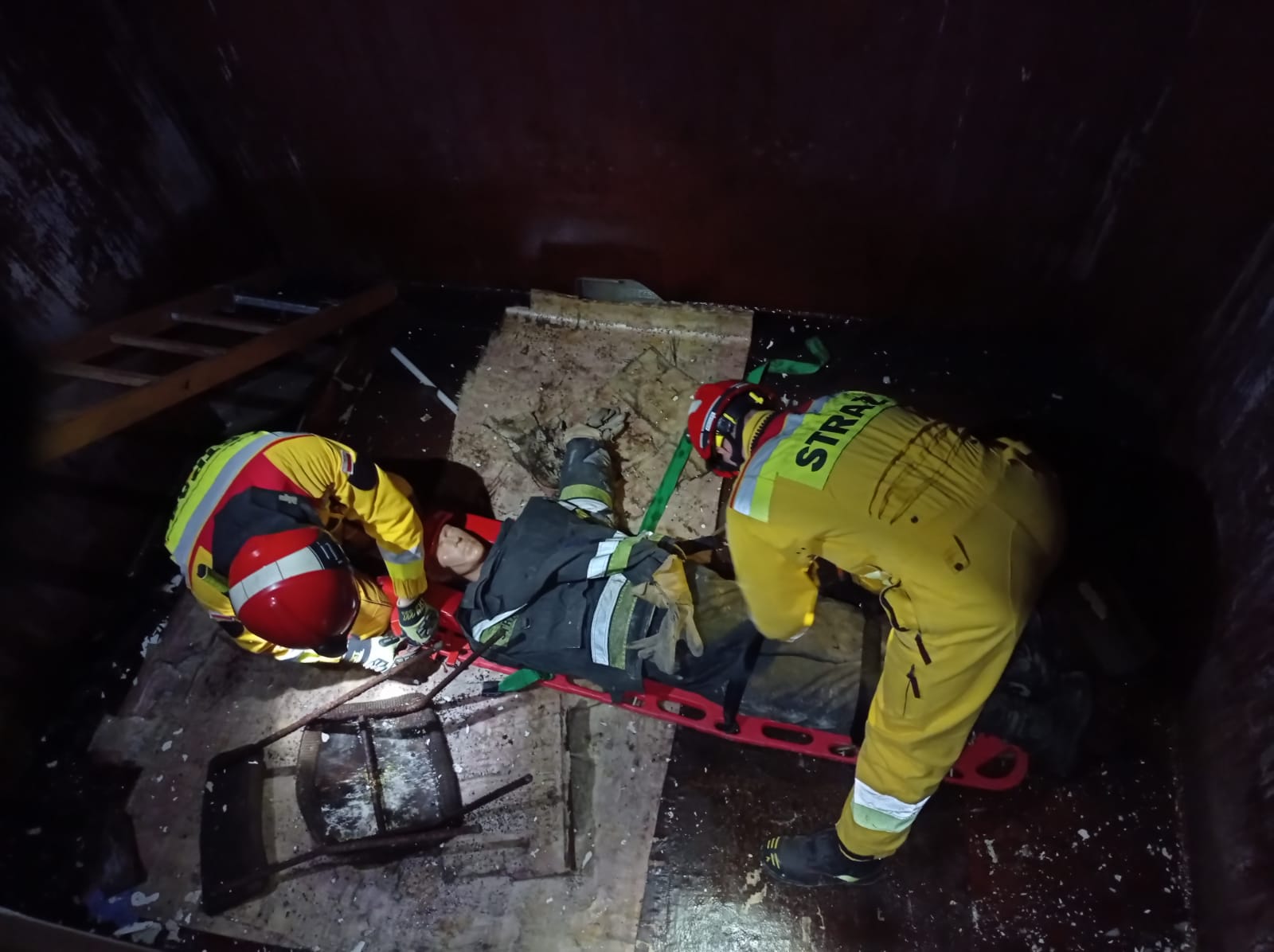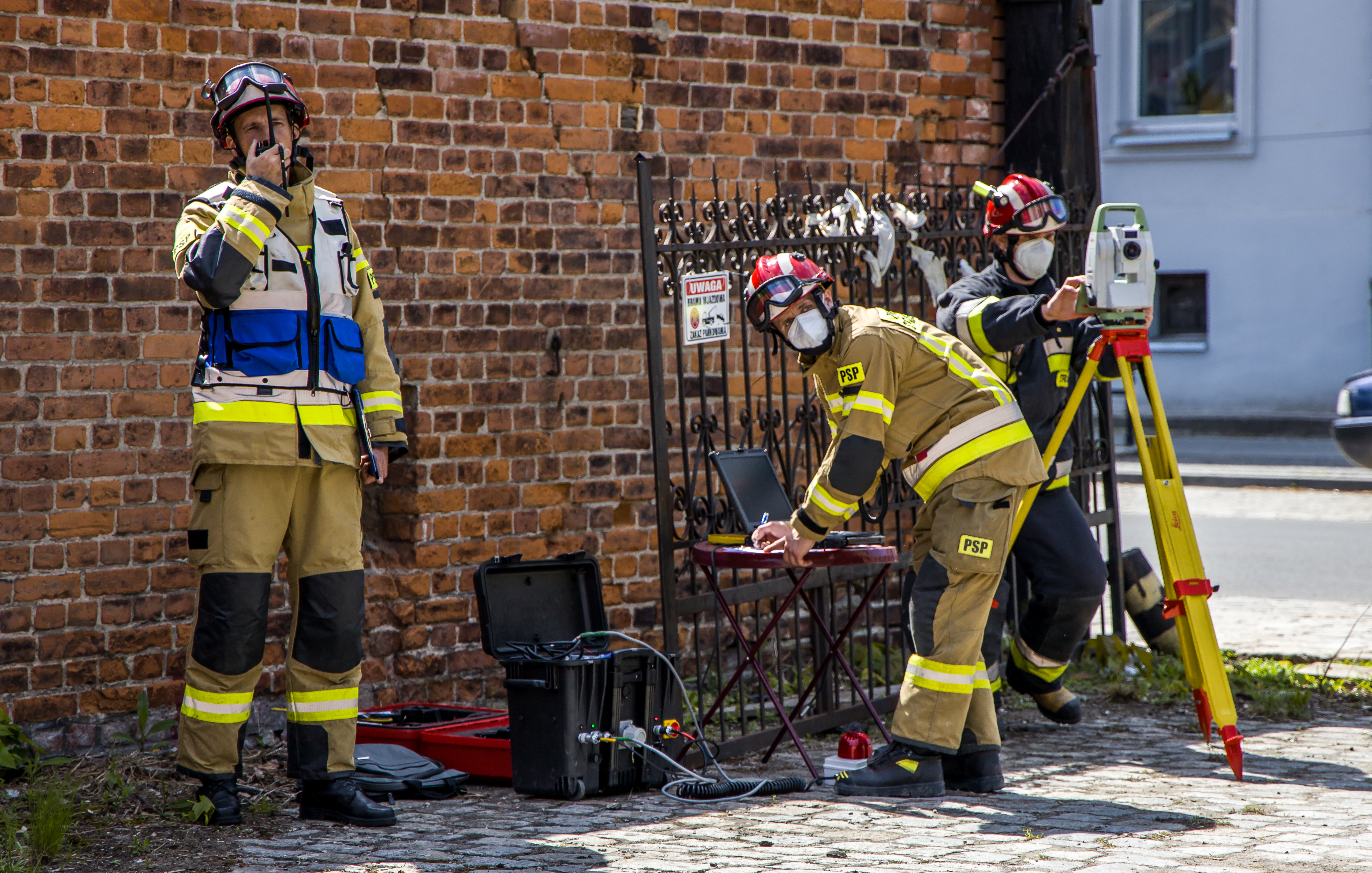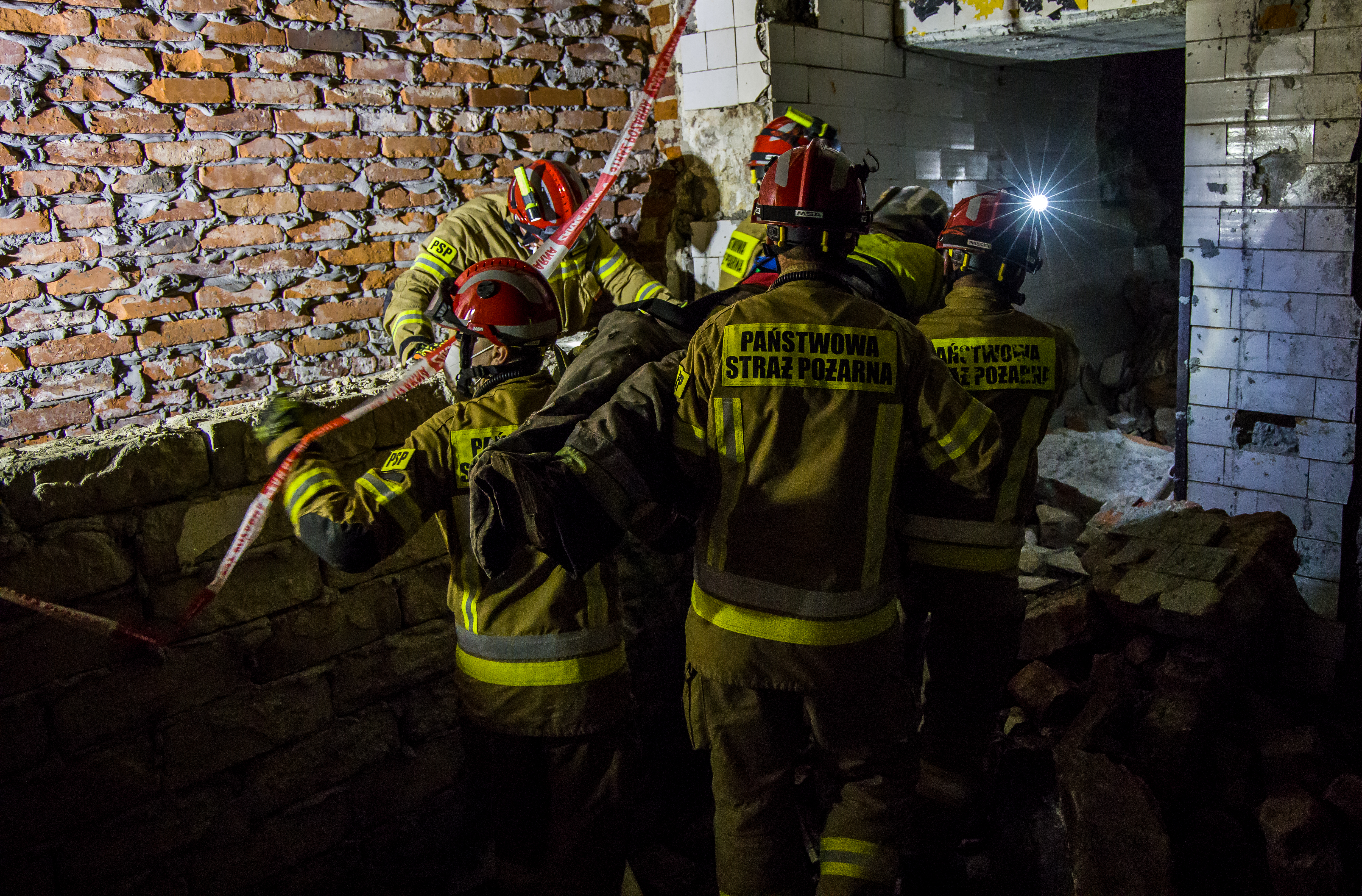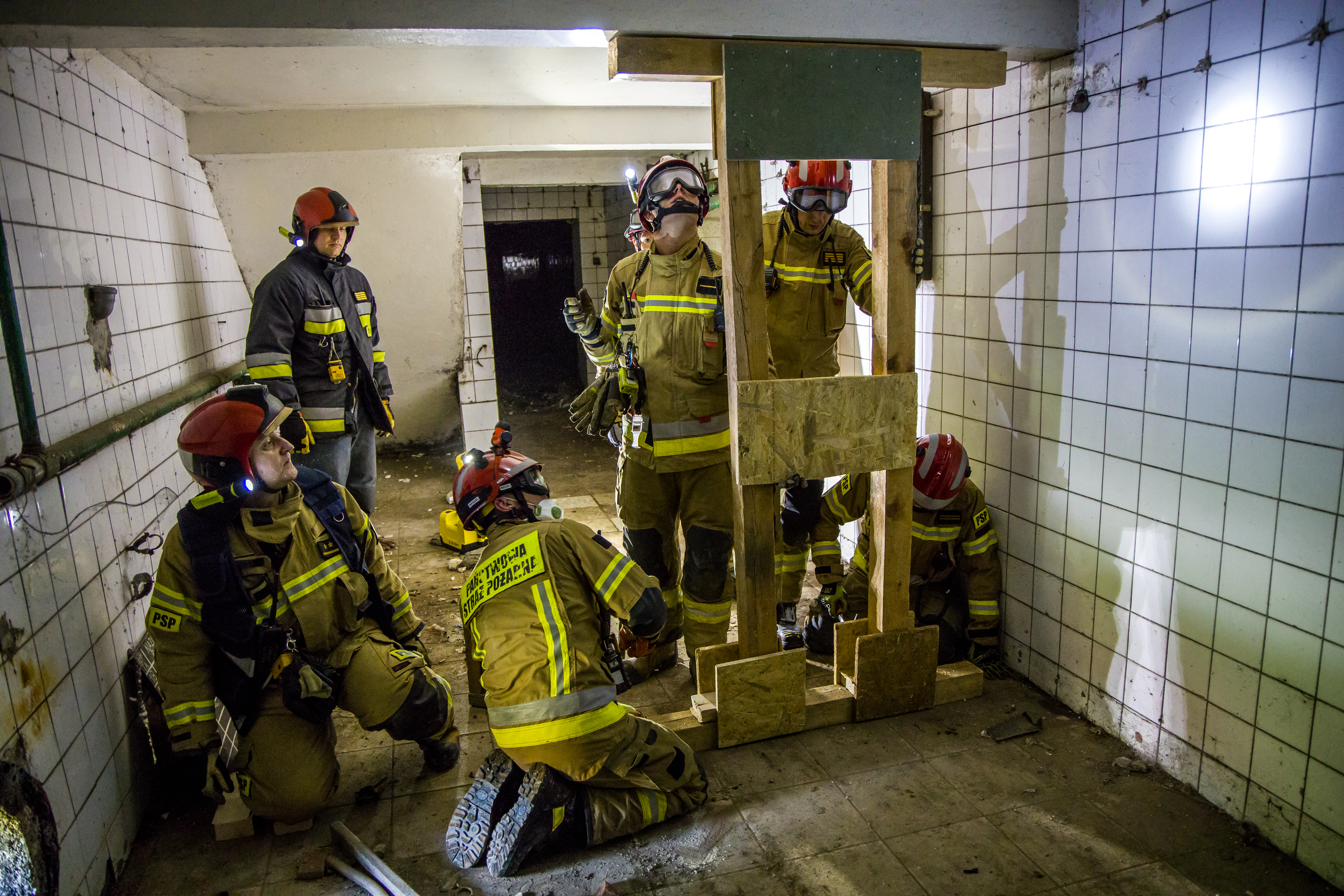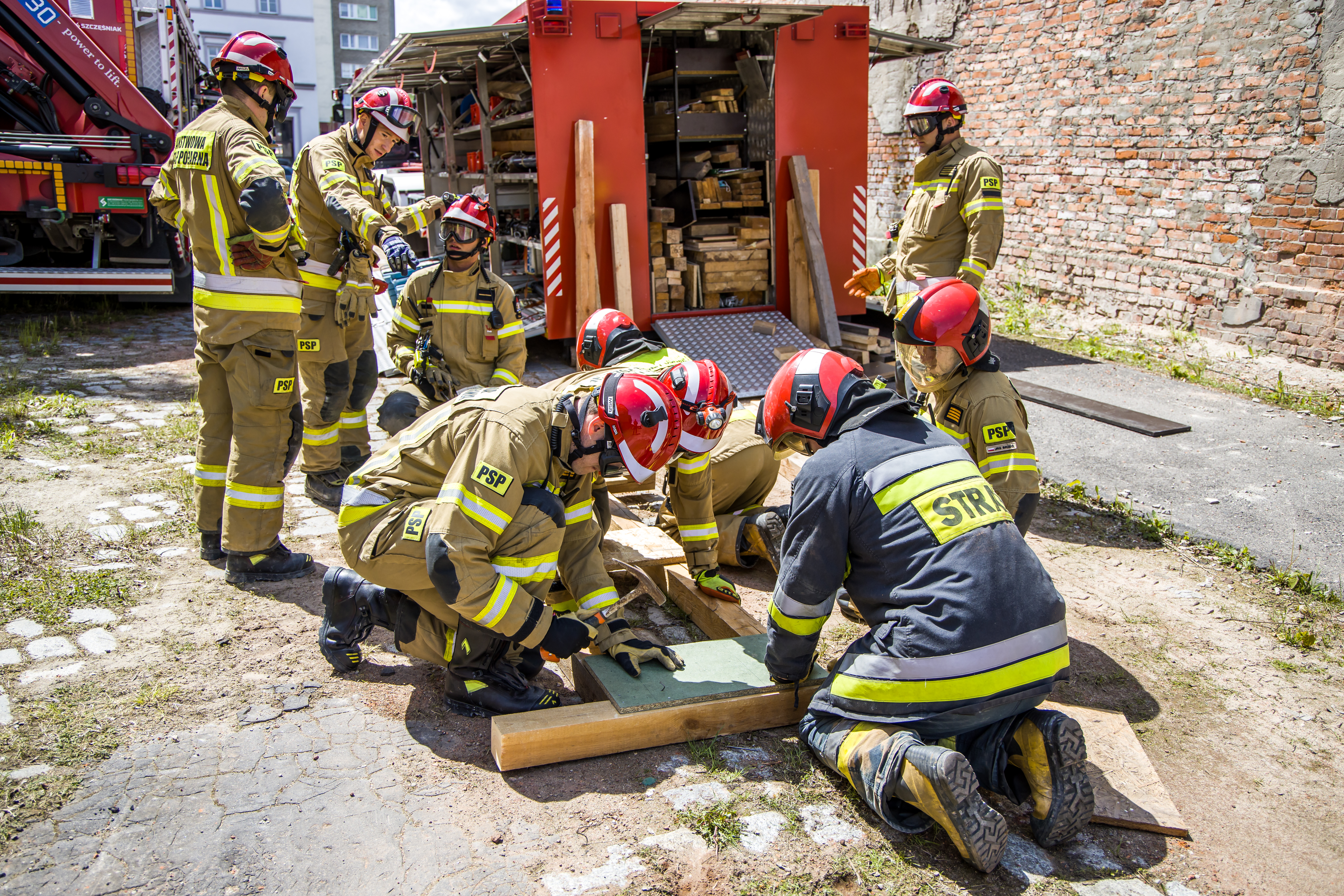 Tematem oraz celem głównym ćwiczeń było doraźne zabezpieczenie uszkodzonych elementów konstrukcyjnych budynków podczas pożarów oraz katastrof budowlanych.