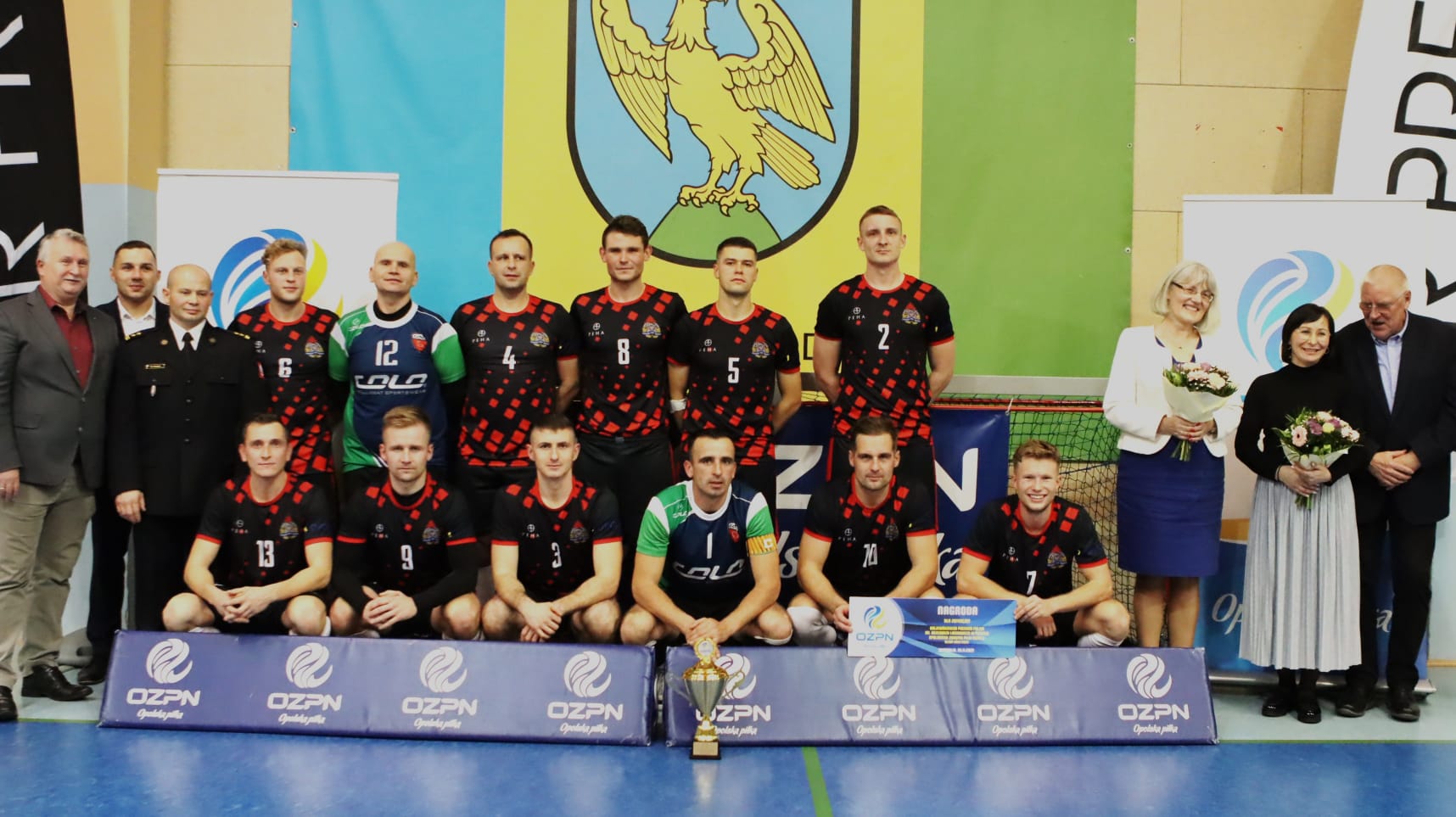 Dziękujemy również publiczności za świetny doping oraz obecność Naczelnika Ośrodka Szkolenia Komendy Wojewódzkiej Państwowej Straży Pożarnej bryg. mgr inż. Wiesława Eliasza, który reprezentował Opolskiego Komendanta Wojewódzkiego Państwowej Straży Pożarnej. Wielkie podziękowania należą się również arbitrom tego spotkania oraz organizatorom za profesjonalizm.