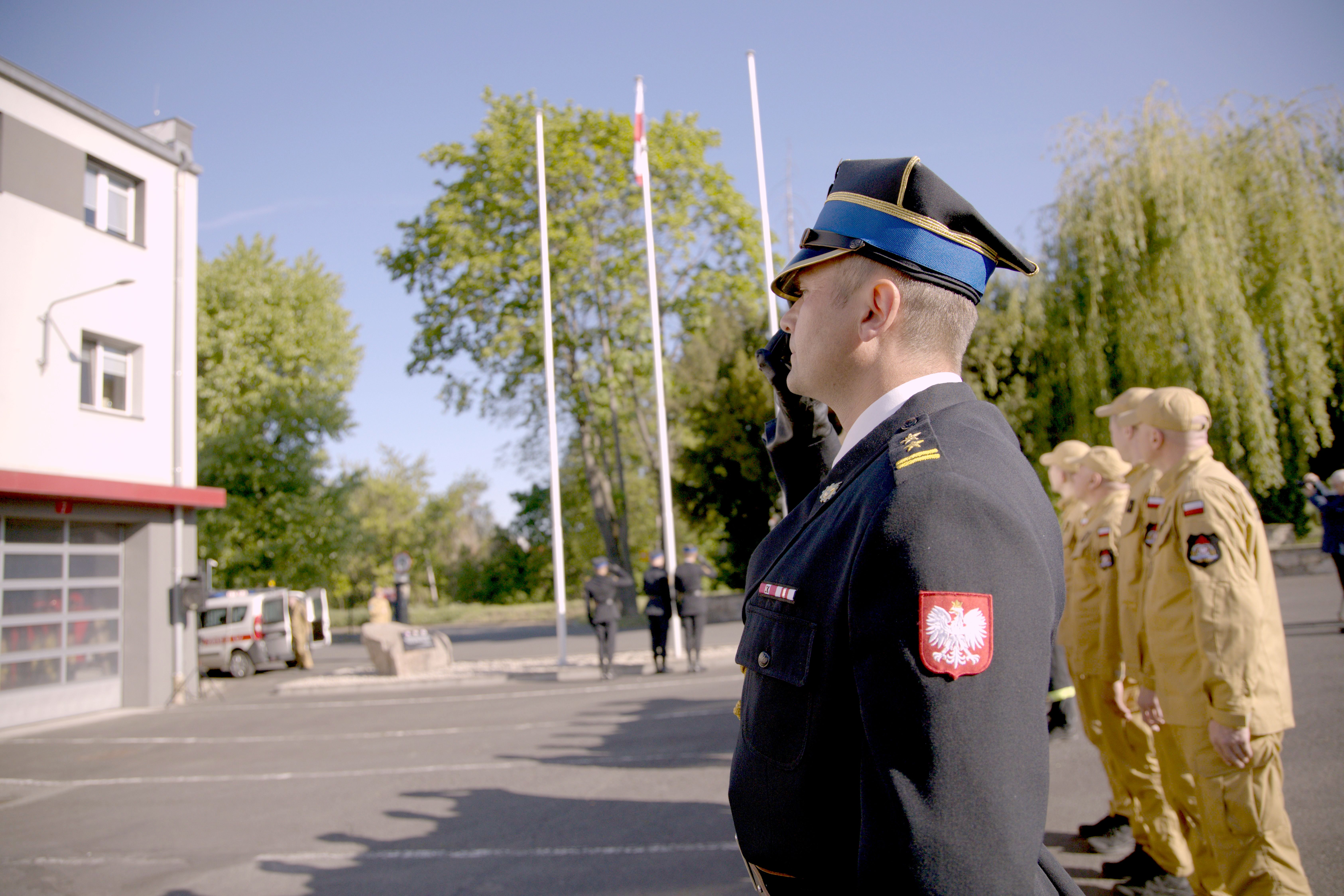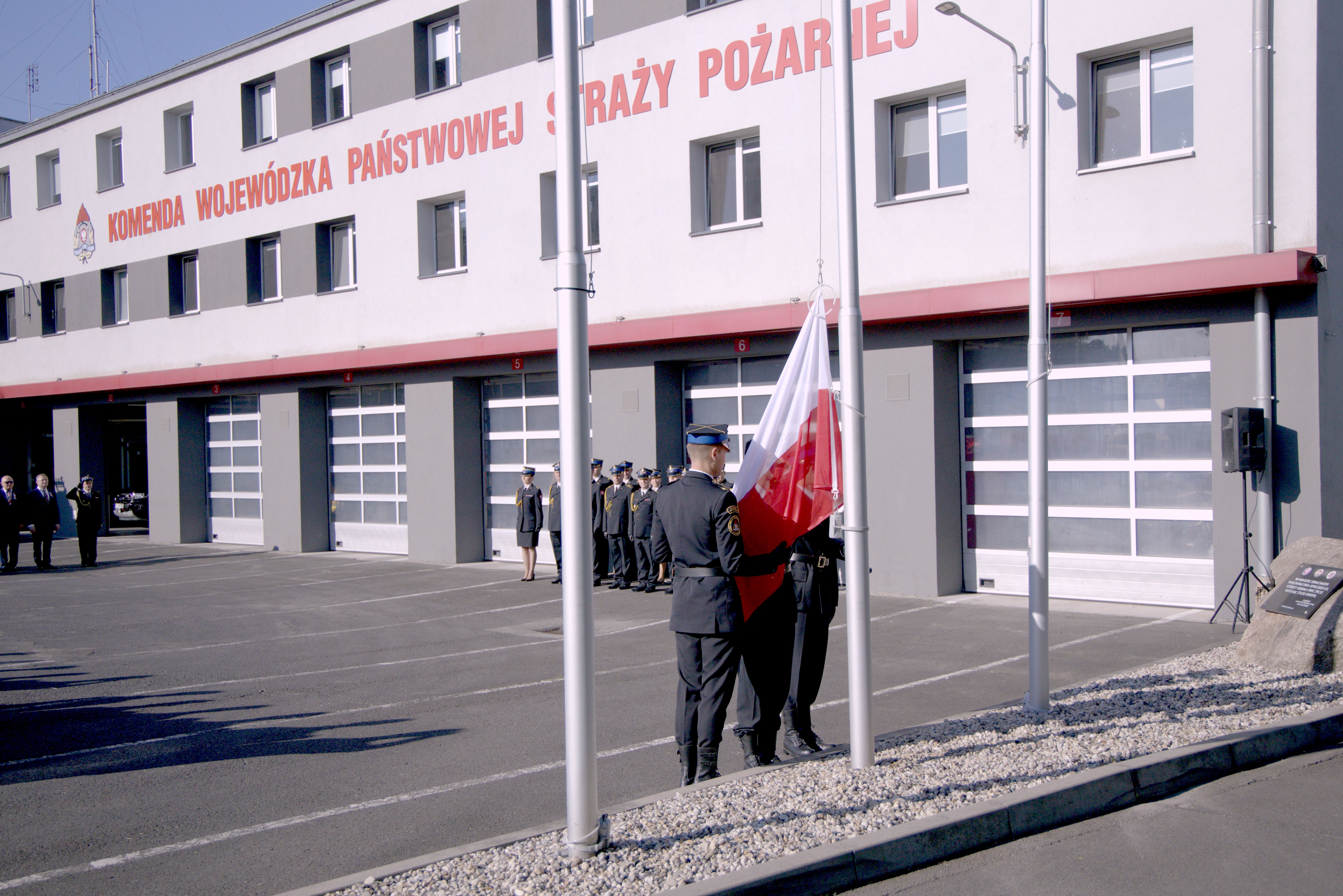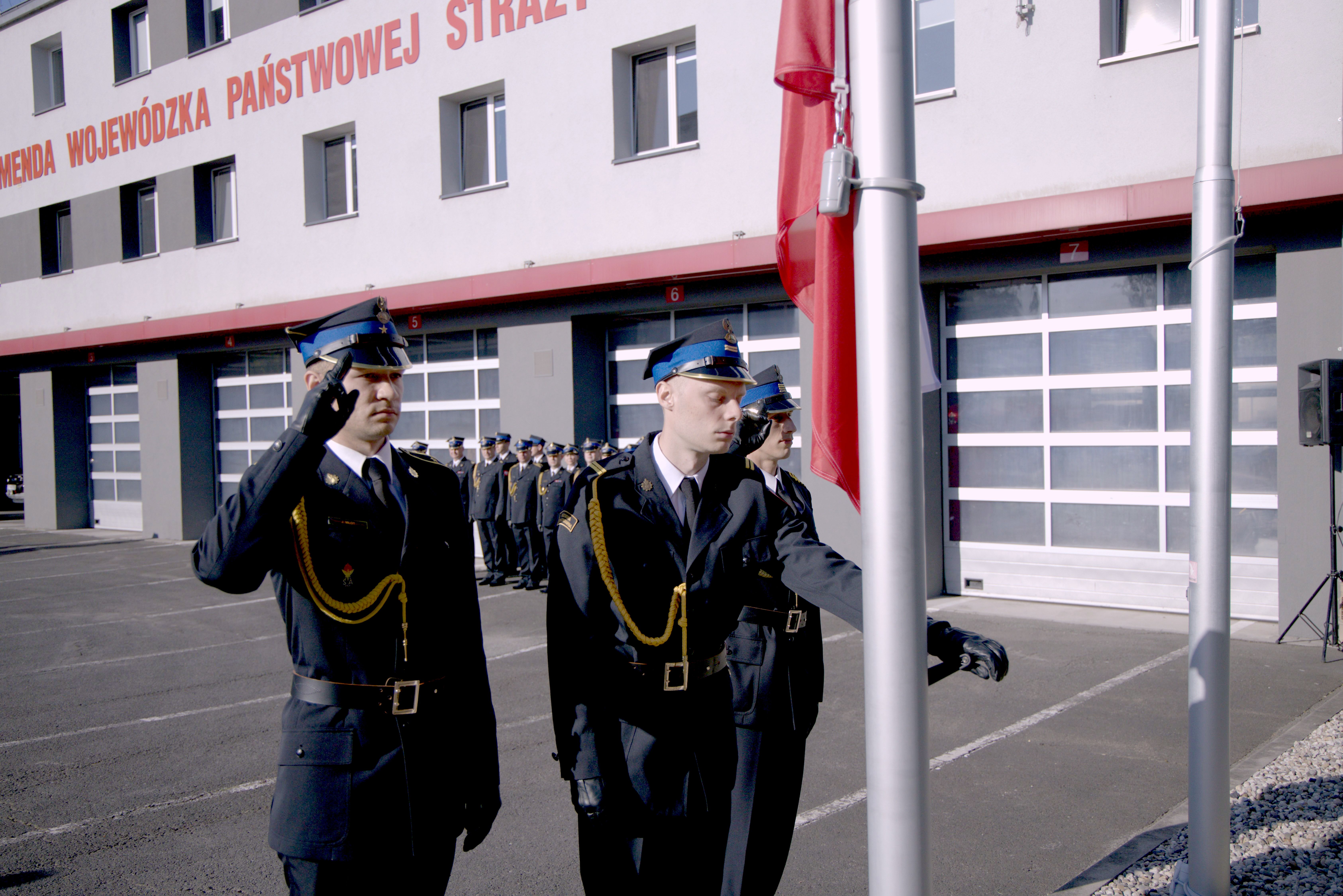 Dzień Flagi Rzeczypospolitej Polskiej oraz odsłonięcie tablicy adresowej KW PSP w Opolu z nazwą ulicy płk. poż. Zdzisława Filingiera