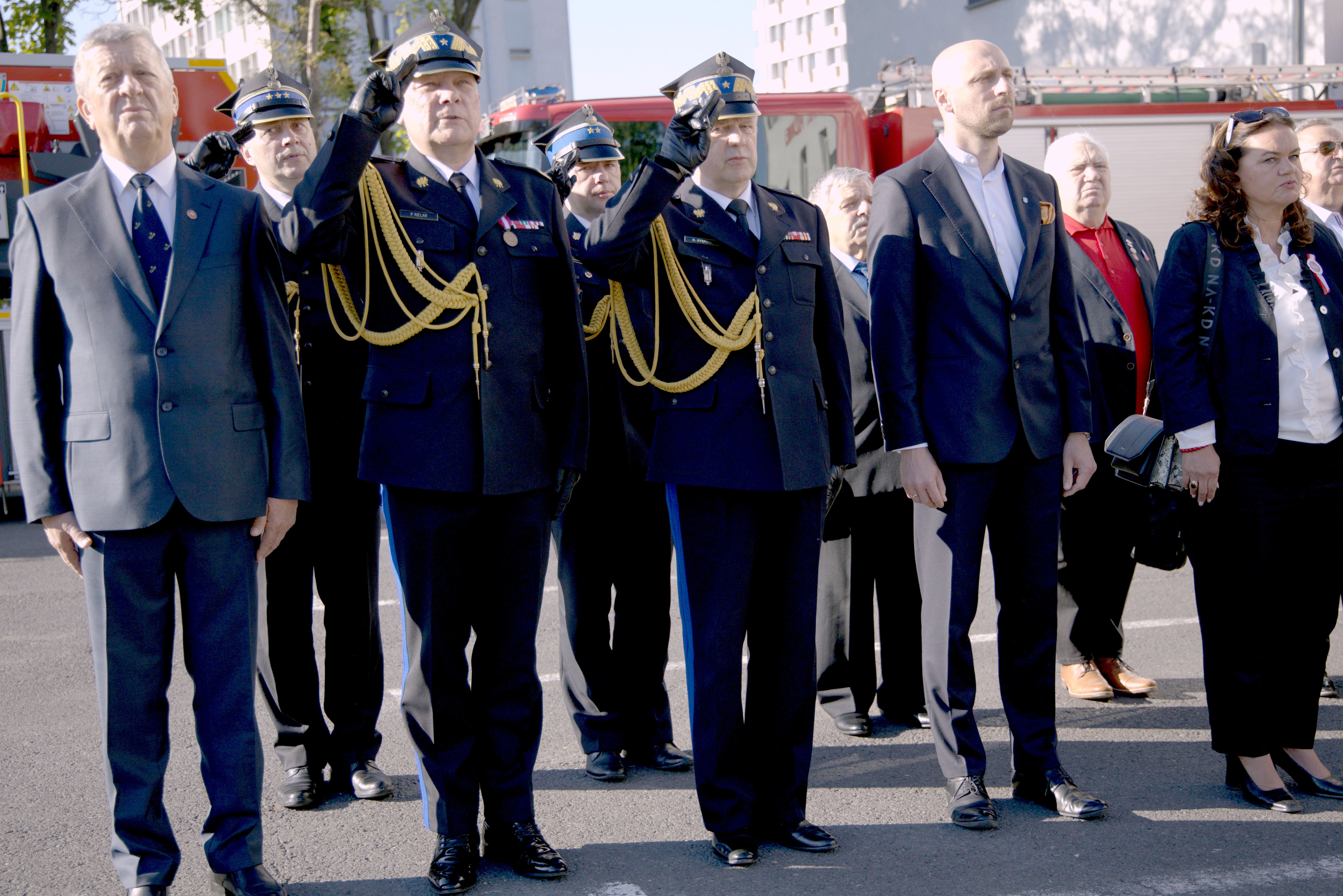 Ponadto rangę uroczystości podnieśli: były Zastępca Komendanta Głównego Państwowej Straży Pożarnej Pan st. bryg. w st. spocz. Jan Miza, były Opolski Komendant Wojewódzki Państwowej Straży Pożarnej Pana nadbryg. w st. spocz. Karol Stępień, Prezes Zarządu Oddziału Wojewódzkiego ZOSP RP w Opolu dh Andrzej Borowski, Zastępca Prezydenta Miasta Opola Pan Łukasz Sowada, Przewodnicząca Rady Miasta Opola Pani Barbara Kamińska, a także byli Zastępcy Komendanta Wojewódzkiego PSP w Opolu, byli Komendanci Powiatowi PSP na terenie woj. opolskiego oraz członkowie Związku Emerytów i Rencistów Pożarnictwa Rzeczypospolitej Polskiej w Opolu na czele z Panem Ryszardem Sajkowskim.
