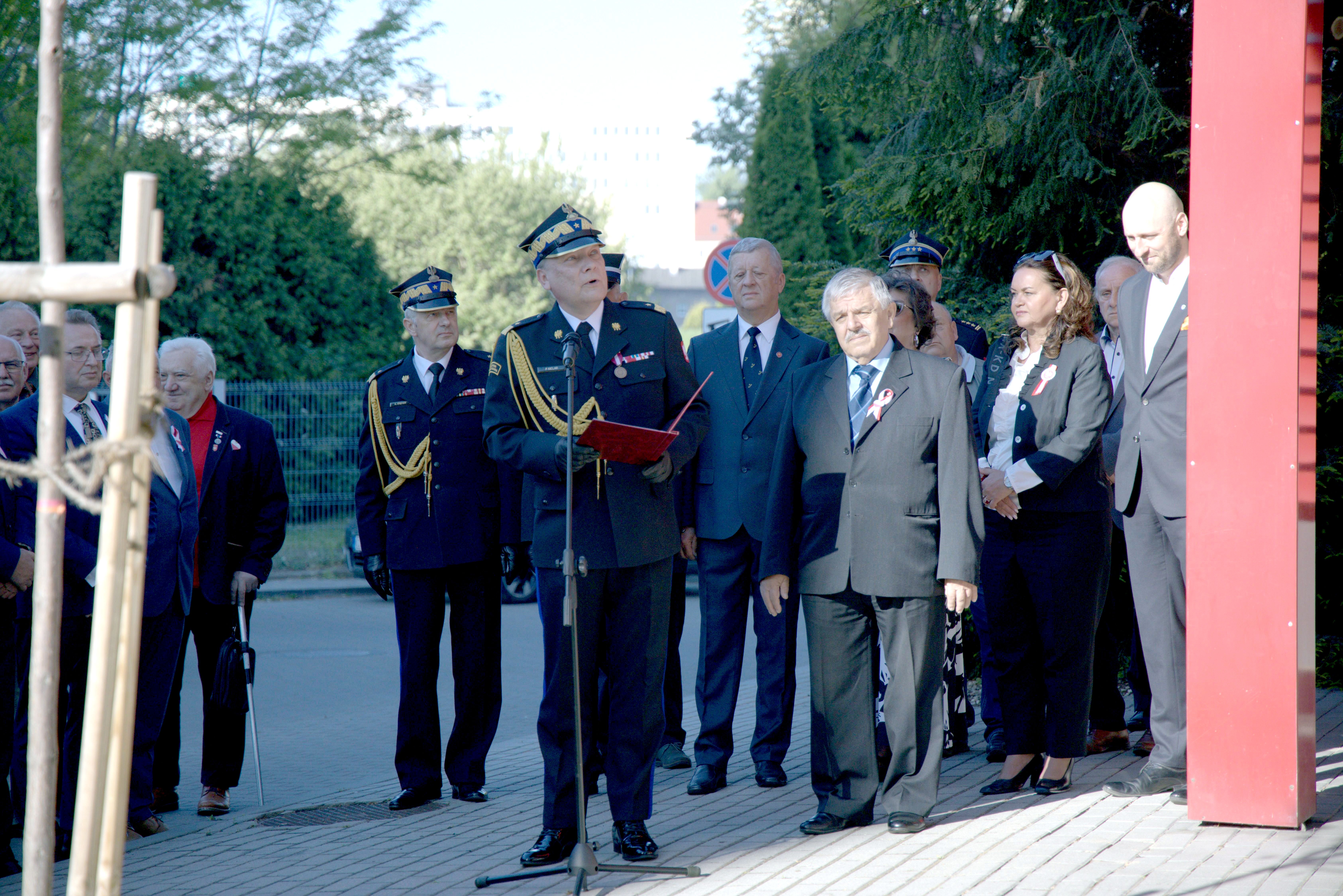 Na placu zewnętrznym Komendy Wojewódzkiej PSP w Opolu zgromadzili się funkcjonariusze KW PSP w Opolu na czele z Opolskim Komendantem Wojewódzkim PSP nadbryg. Pawłem Kielarem oraz jego zastępcami, funkcjonariusze Jednostki Ratowniczo-Gaśniczej nr 2 KM PSP w Opolu oraz zaproszeni goście. Wśród nich w sposób szczególny należy wymienić rodzinę Pana pułkownika pożarnictwa Zdzisława Filingiera na czele z córką Panią Joanną Biesiada.