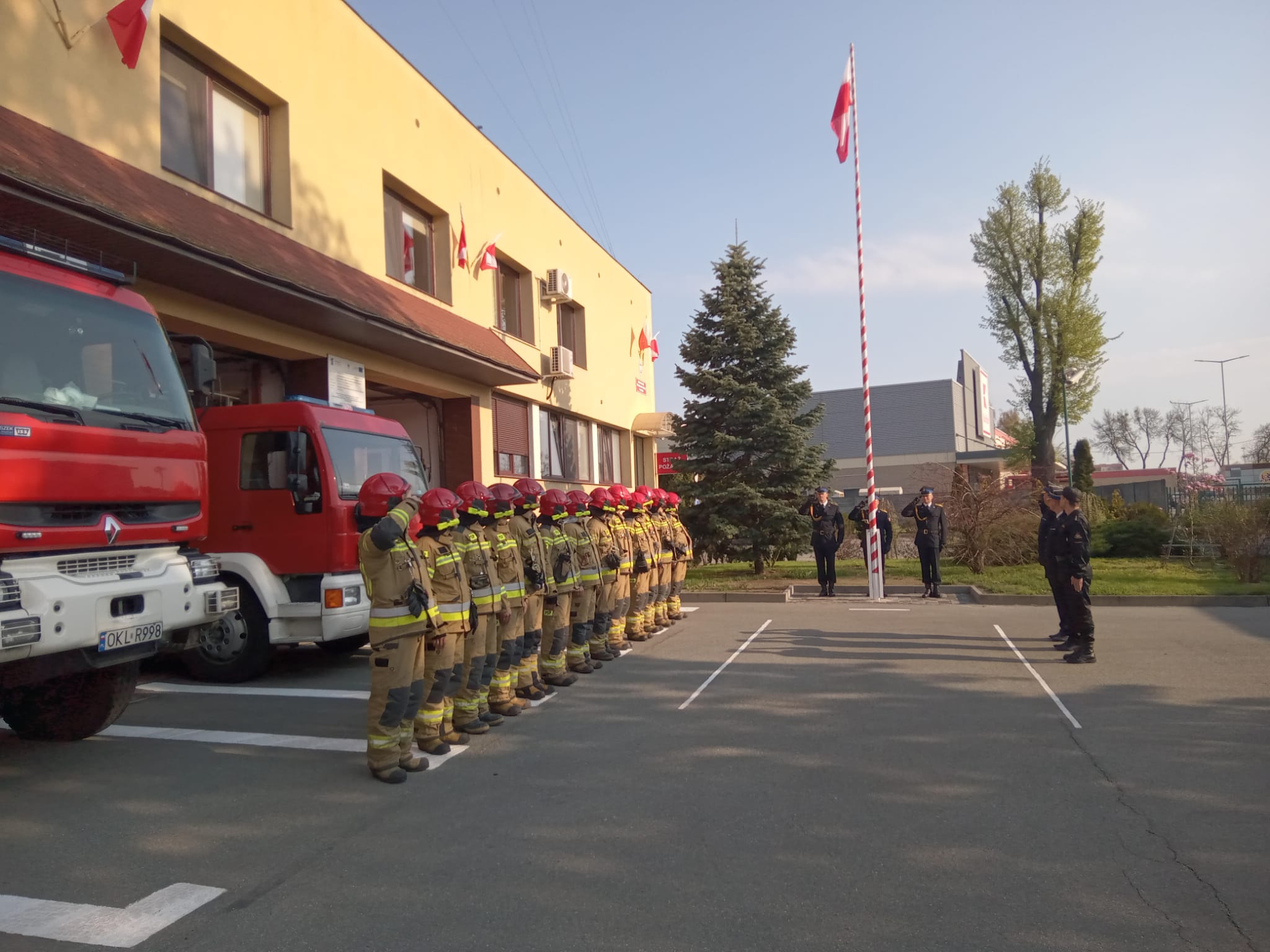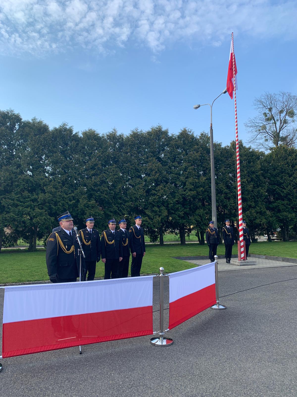 Strażacy na terenie województwa opolskiego uroczyście podnieśli flagę państwową na maszt, czcząc tym samym Dzień Flagi Rzeczypospolitej Polskiej.