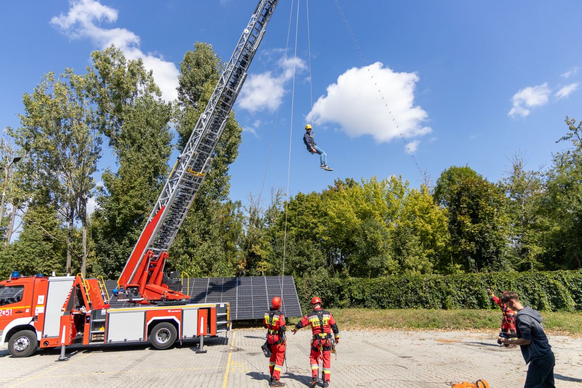 Uczestnicy mogli również zapoznać się z elementami ratownictwa wysokościowego. Strażacy z Jednostki Ratowniczo-Gaśniczej nr 1 w Opolu - Specjalistyczna Grupa Ratownictwa Wysokościowego „Opole”- zaprosili uczestników do spróbowania własnych sił poprzez wejście na drabinę mechaniczną lub drabinkę speleo.