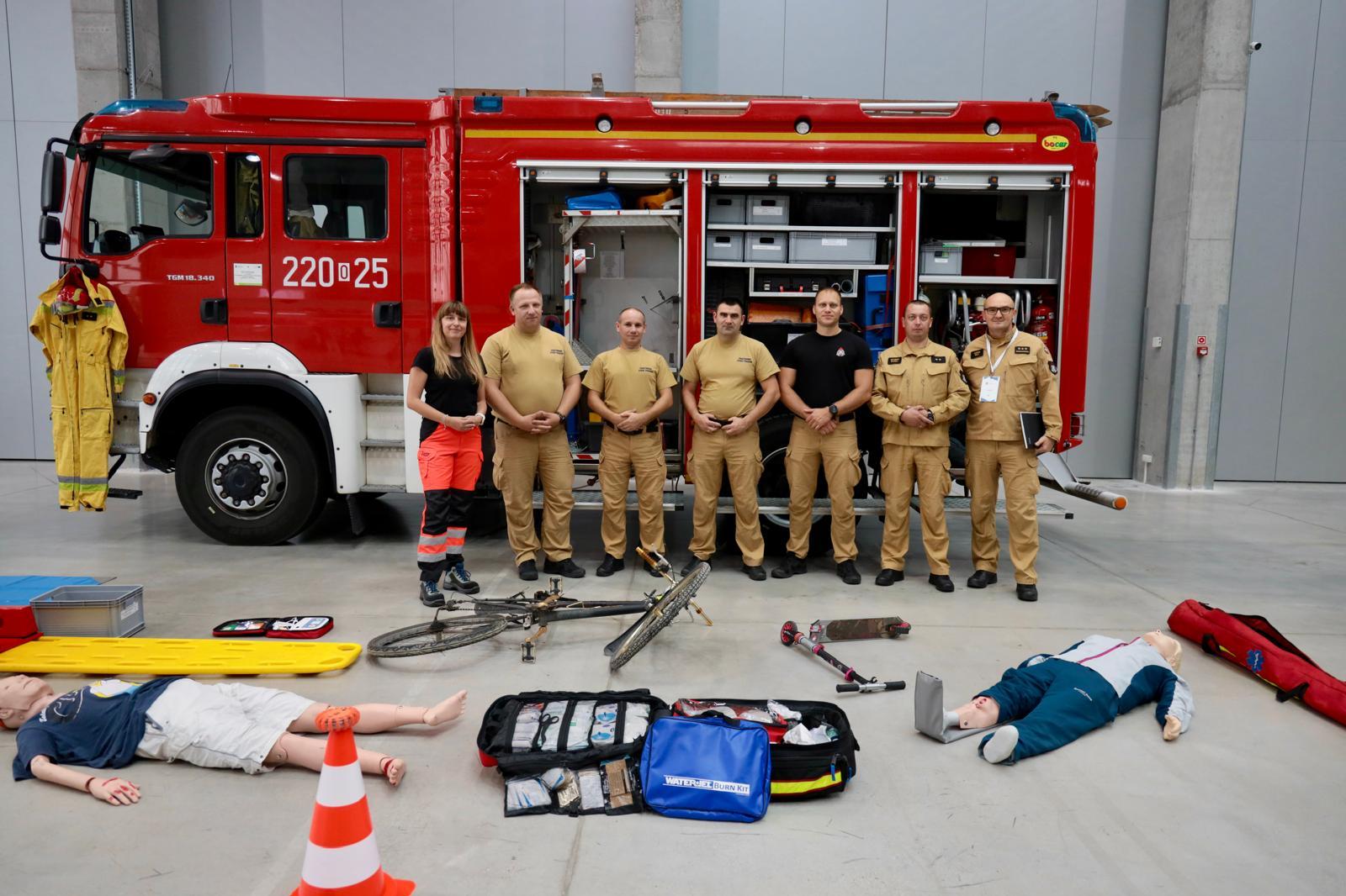Ośrodek Szkolenia Komendy Wojewódzkiej Państwowej Straży Pożarnej w Opolu zaprezentował sprzęt znajdujący się na wyposażeniu wozu bojowego oraz na przykładzie zainscenizowanego wypadku zderzenia rowerzysty z osobą jadącą na hulajnodze omówił zasady udzielania kwalifikowanej pierwszej pomocy przez strażaków będących na miejscu zdarzenia. Strażacy z KM PSP w Opolu dokonali prezentacji posiadanego sprzętu oraz przybliżyli specyfikę działań SGRW-N „Opole”.