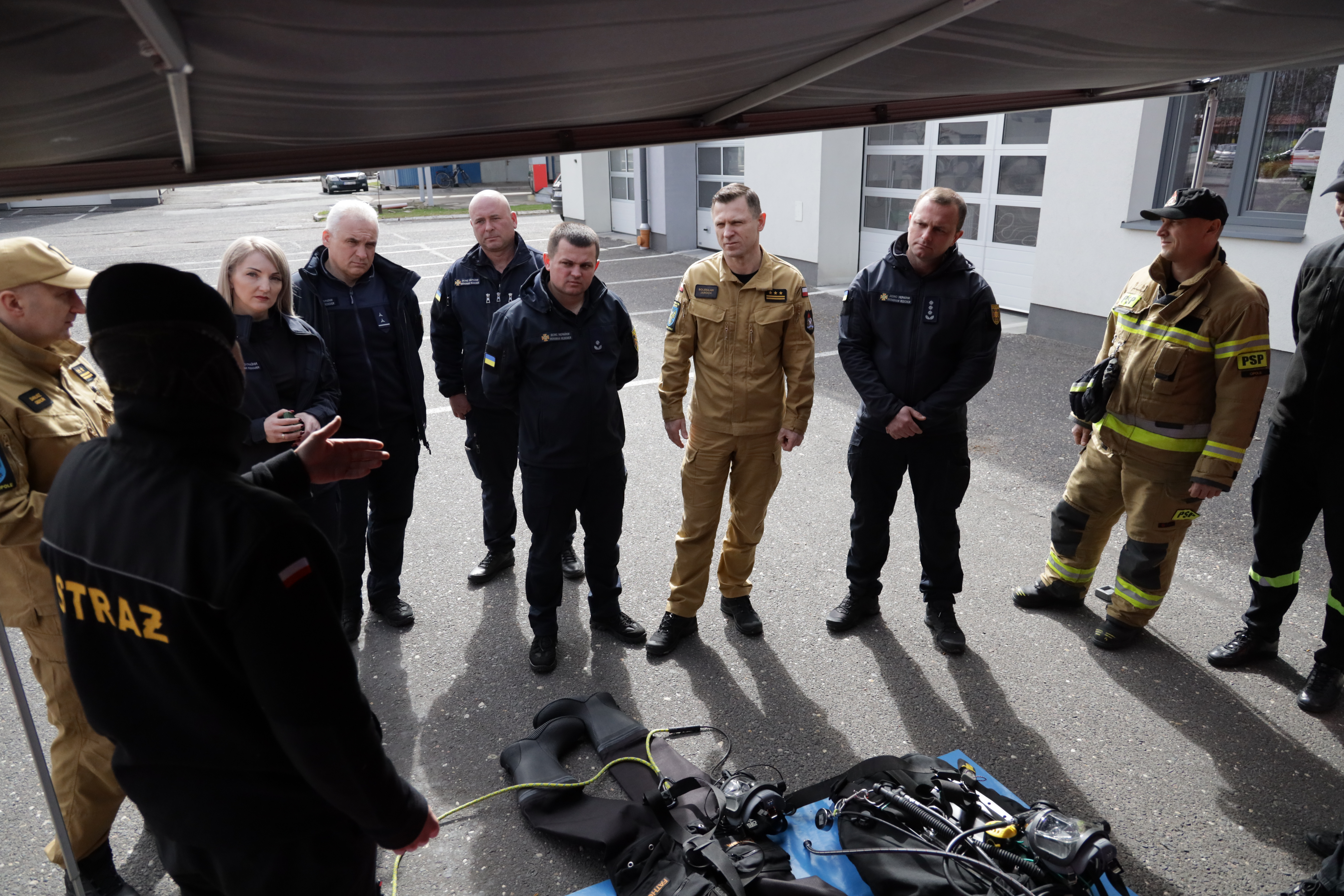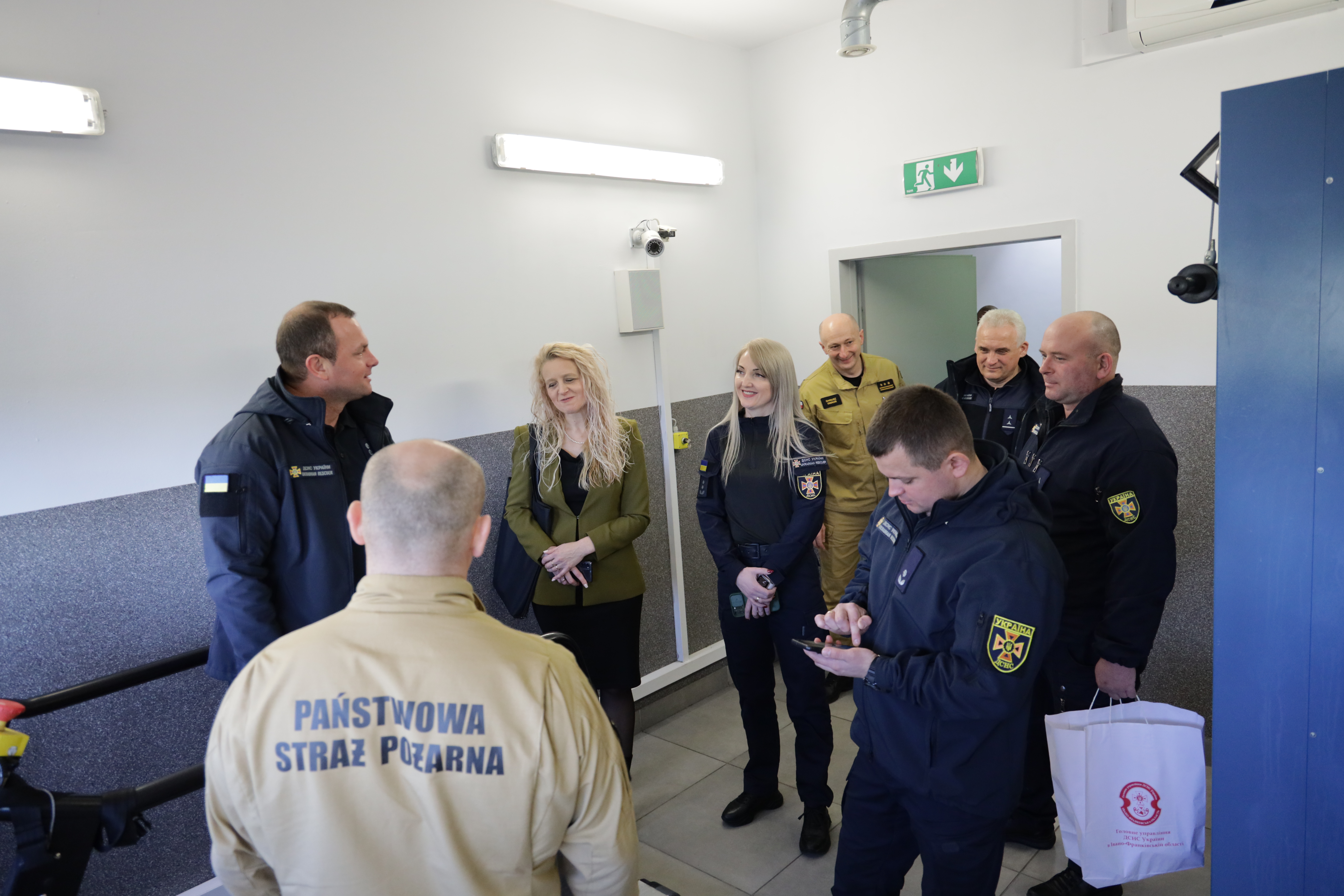 Mundurowych z Ukrainy przywitał Zastępca Opolskiego Komendanta Wojewódzkiego PSP w Opolu st. bryg. Dariusz Gieroń.