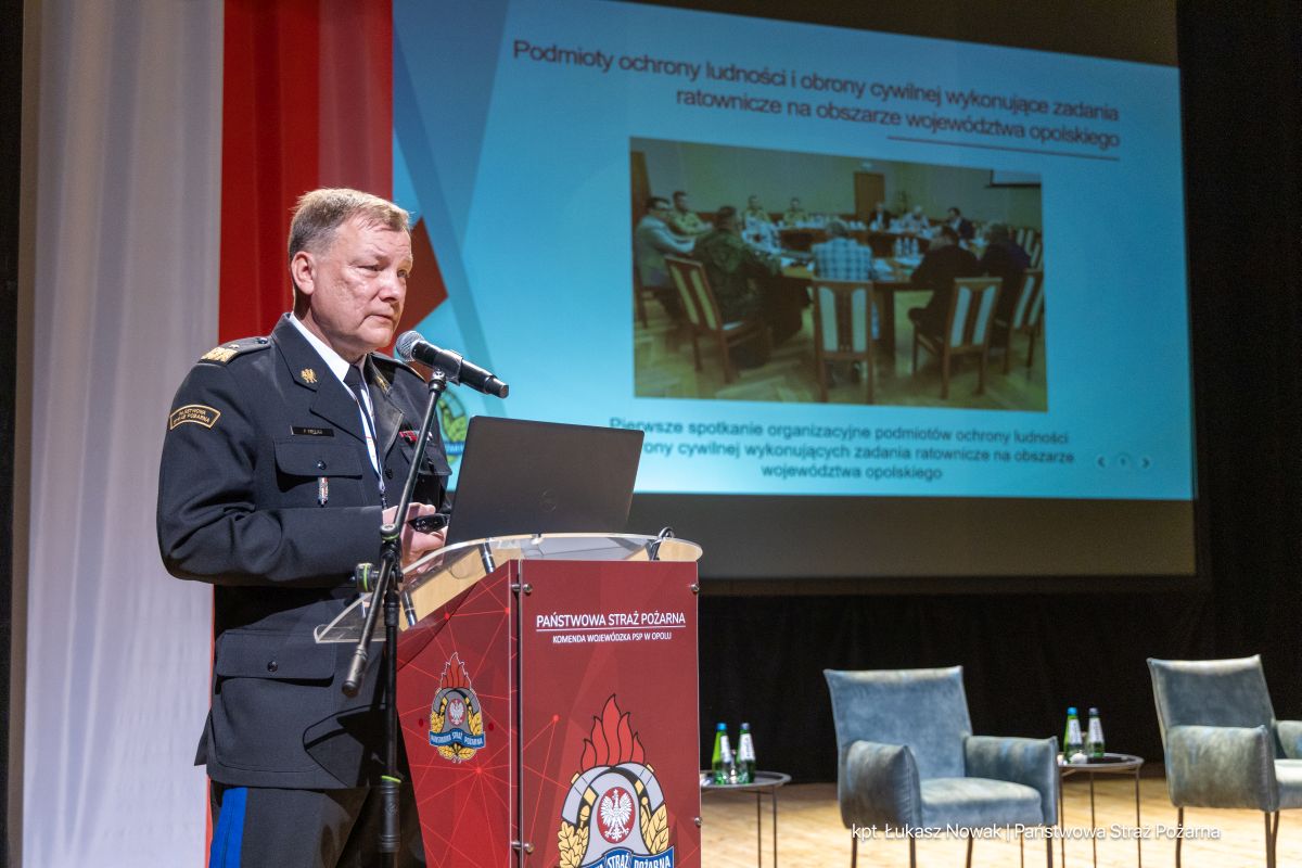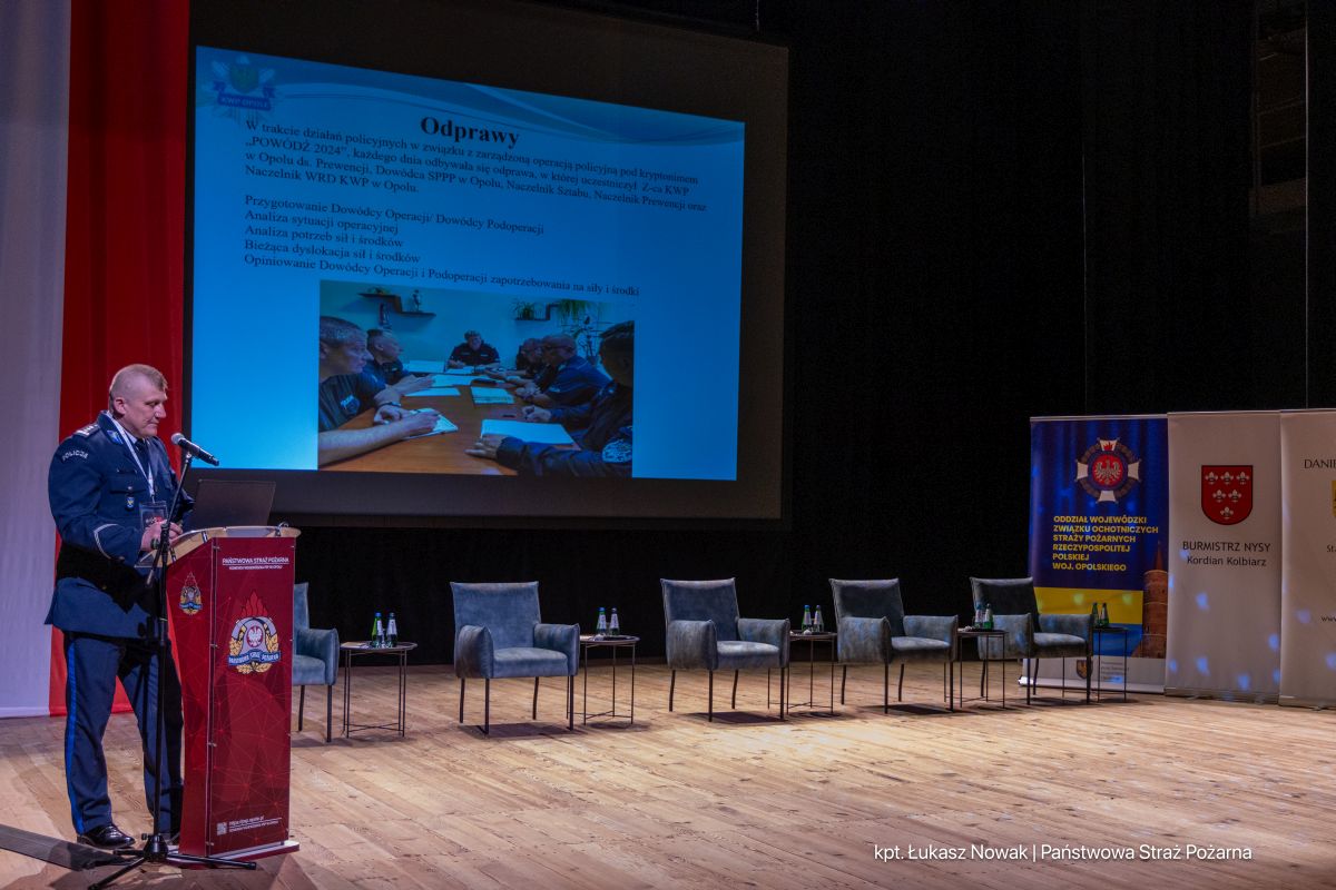 Konferencja rozpoczęła się m.in. od uroczystego wręczenia podziękowań przez Wojewodę za zaangażowanie i pracę na rzecz bezpieczeństwa mieszkańców oraz działań powodziowych – wyróżnieni zostali m.in. Opolski Komendant Wojewódzki PSP, Andrzej Borowski – Prezes Zarządu Oddziału Wojewódzkiego ZOSPRP oraz st. bryg. Paweł Gotkowski – Komendant Powiatowy PSP w Nysie.