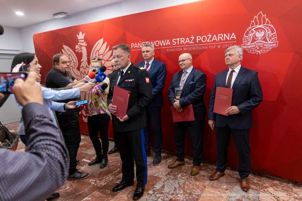 W konferencji udział wzięli między innymi: Monika Jurek Wojewoda Opolski, Komendant Główny Państwowa Straż Pożarna nadbryg. Wojciech Kruczek, Marszałek Województwa Opolskiego Pan Szymon Ogłaza, Daniel Palimąka Starosta Nyski oraz Opolski Komendant Wojewódzki PSP nadbryg. Paweł Kielar i dh Andrzej Borowski Prezes ZW ZOSP RP.
