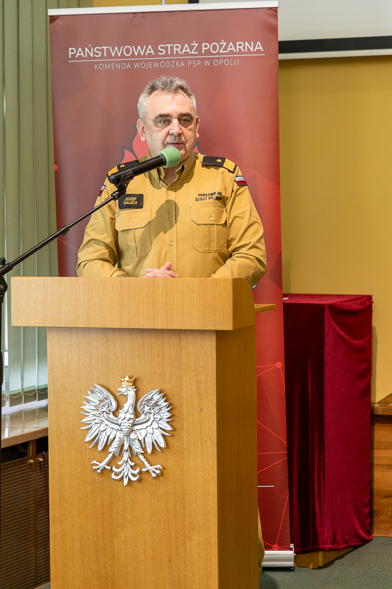 Zastępca Komendanta Głównego PSP nadbryg. Józef Galica krótko przybliżył obecnym ustawę o ochronie ludności i obronie cywilnej, podziękował za zaangażowanie służb współpracujących oraz za wspólne działania. Komendant podziękował za ogromne zaangażowanie strażaków województwa opolskiego w ubiegłym roku, w tym również w kontekście jesiennej powodzi w naszym województwie.