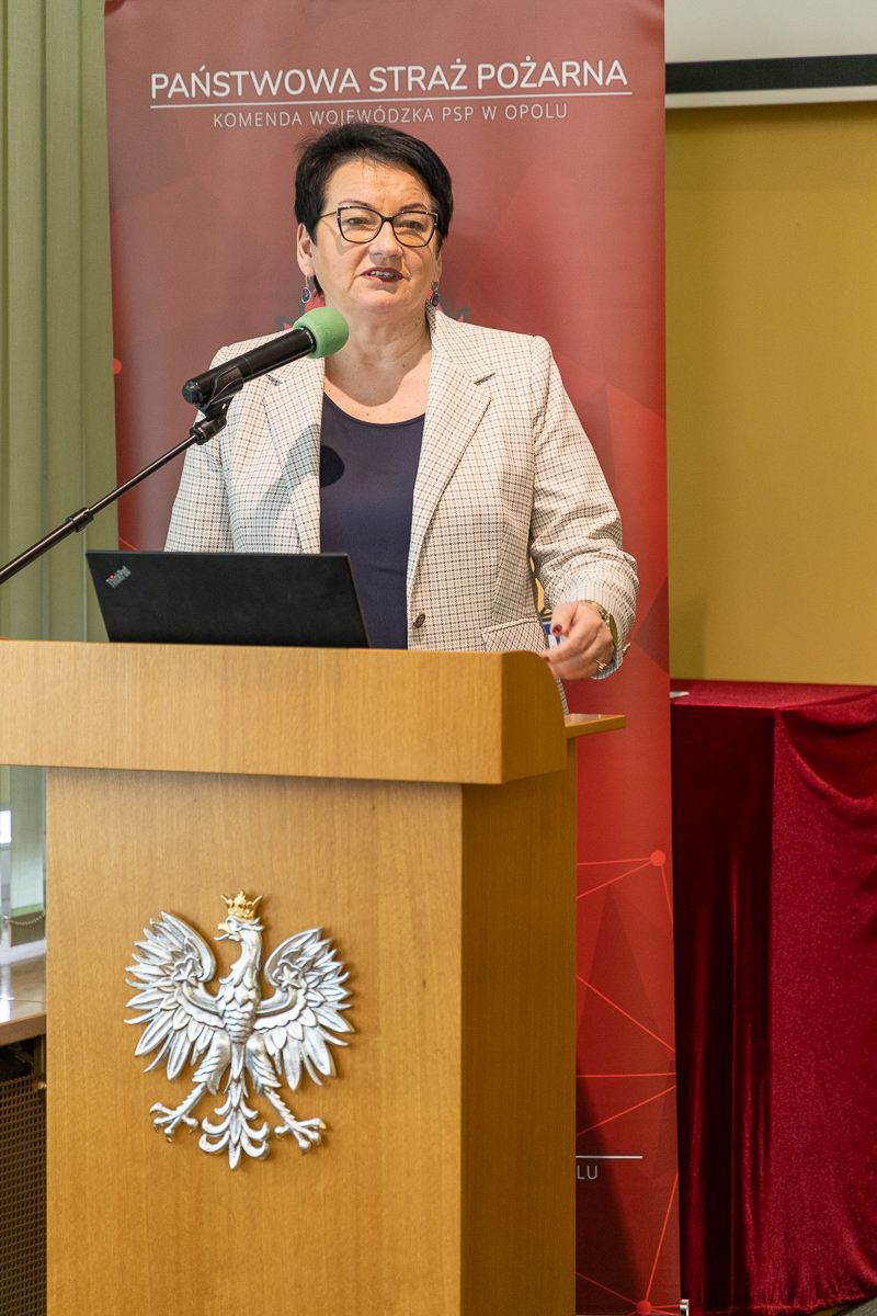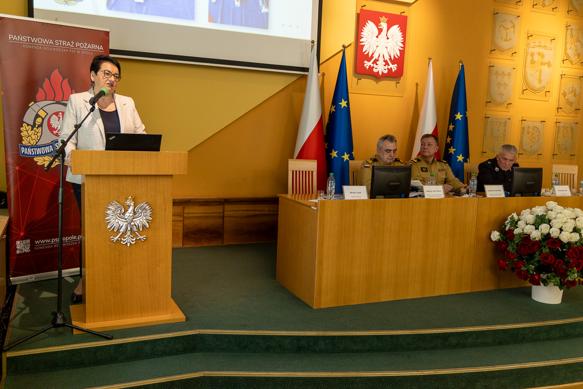 Wojewoda Opolski Monika Jurek w swoim wystąpieniu podziękowała strażakom za współpracę, pomoc podczas powodzi a przede wszystkim za koordynację działań wszystkich służb. Pani Wojewoda Opolski podkreślała jak ważna jest współpraca i działania jednostek ochrony przeciwpożarowej w zakresie zarządzania kryzysowego i ochrony ludności.