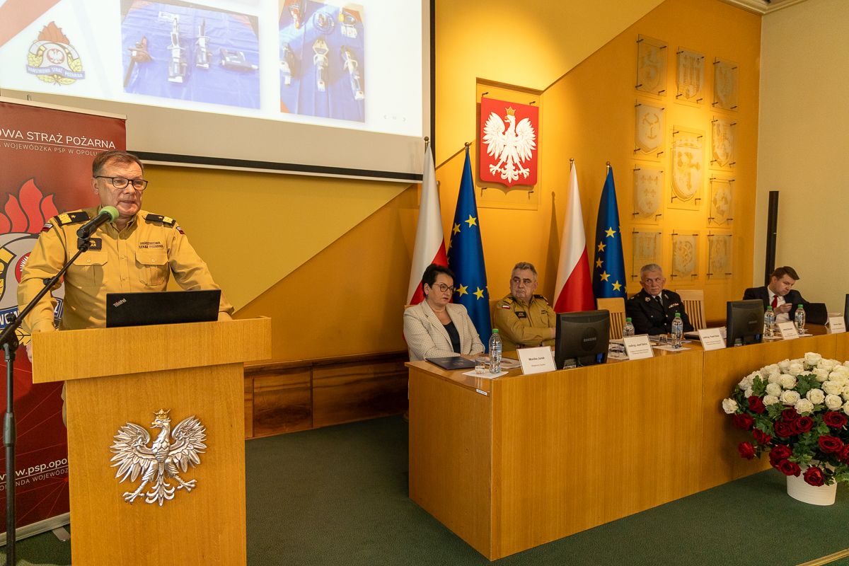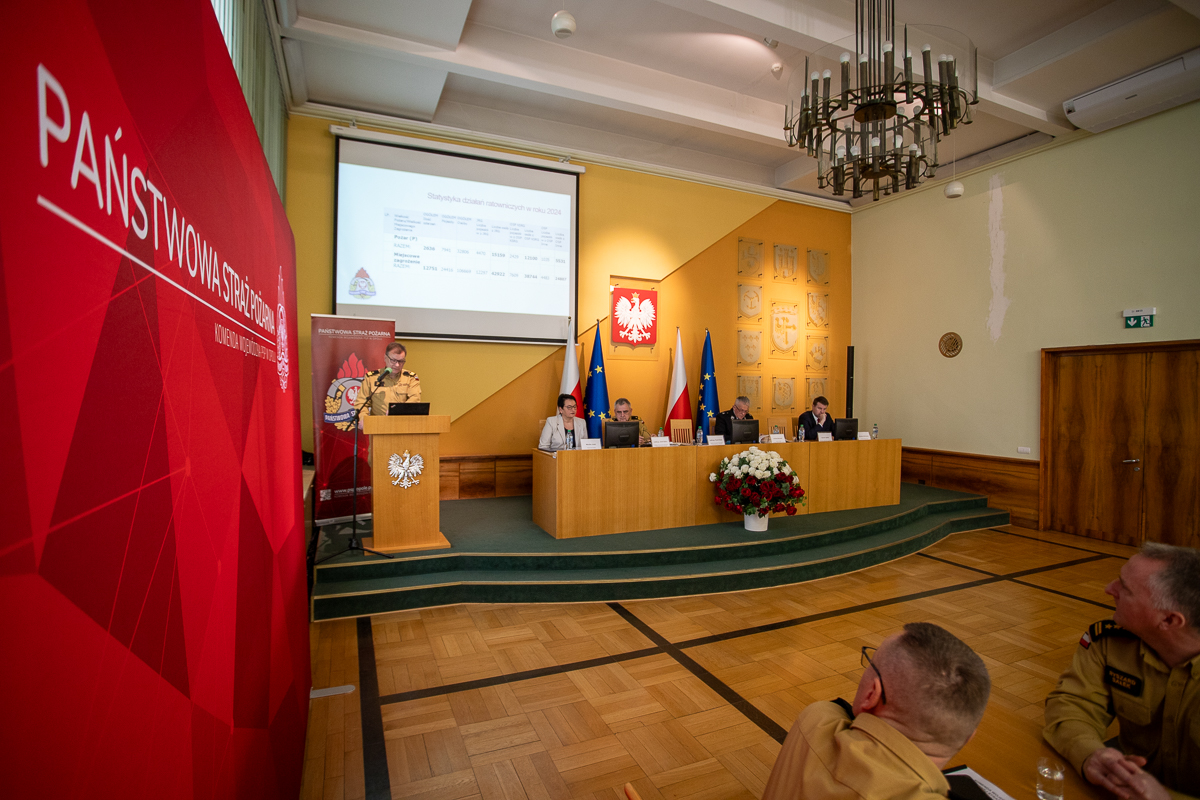 25 lutego 2025 roku w Sali Herbowej Opolskiego Urzędu Wojewódzkiego odbyła się narada kadry kierowniczej Państwowej Straży Pożarnej województwa opolskiego, podsumowująca działalność za rok 2024.