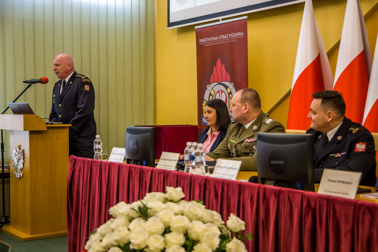 Spotkanie otworzył st. bryg. Krzysztof Kędryk Opolski Komendant Wojewódzki PSP w Opolu, który w swoim wystąpieniu podkreślił zaangażowanie strażaków w minionym 2022 roku i podziękował funkcjonariuszom PSP i druhom OSP za ich poświęcenie, profesjonalizm i skuteczność w działaniu. Następnie Opolski Komendant Wojewódzki PSP przedstawił realizację zadań za 2022 rok oraz plany na 2023 rok.