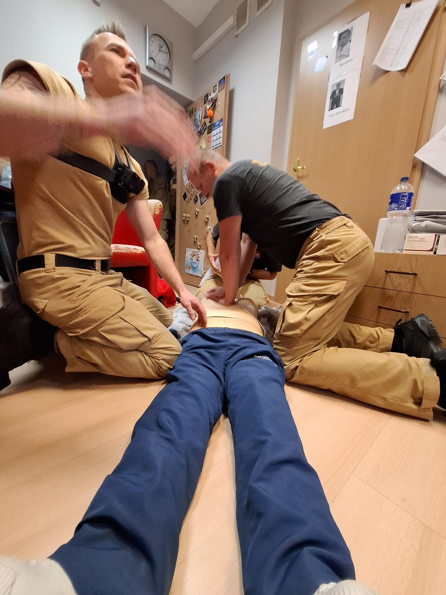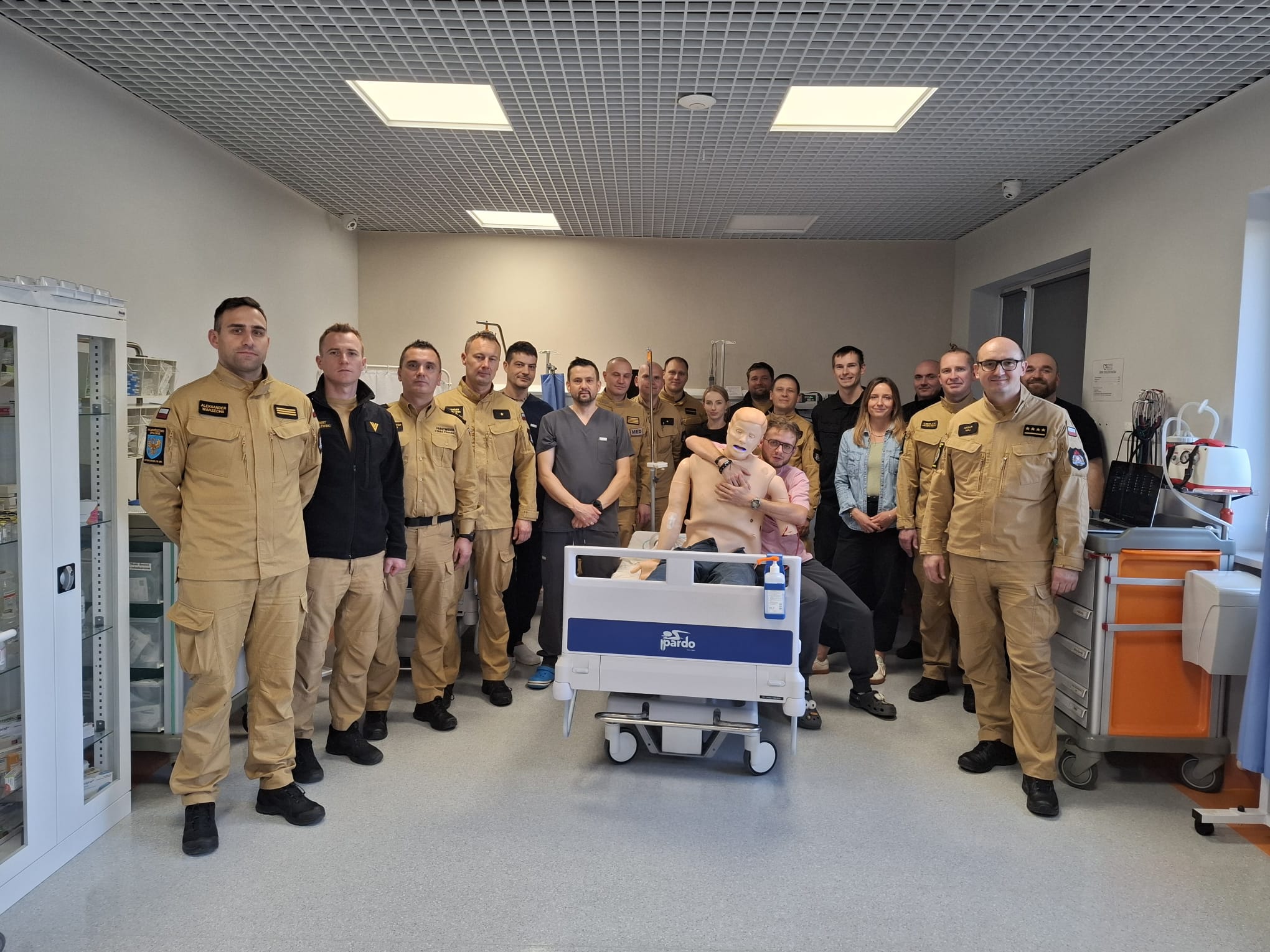 Na mocy podpisanego porozumienia pomiędzy Uniwersytetem Opolskim, a Komendą Wojewódzką PSP w Opolu strażacy mieli okazję doskonalić swoje umiejętności w Innowacyjnym Centrum Symulacji Medycznej. Pod czujnym okiem mgr. Dawida Obłój - dyrektora ICSM, techników ICSM oraz st. kpt. Artura Maja koordynatorzy i instruktorzy PSP mogli zmierzyć się z zadaniami z zakresu podstawowych i zaawansowanych zabiegów resuscytacyjnych. Ciekawym rozwiązaniem była możliwość użycia podczas ćwiczeń kamer GoPro, umieszczonych na głowie lub klatce piersiowej ratownika, które pozwalały na nagrywanie i późniejszą analizę materiału z symulacji wysokiej wierności w czasie debriefingu (perspektywa „oczu bohatera”). Dzięki temu rozwiązaniu można było obserwować każdy ruch uczestnika symulacji, a także towarzyszących w scenariuszu osób. Ratownicy medyczni i instruktorzy mogli również zapoznać się z najnowszymi symulatorami wysokiej wierności i ich możliwościami.