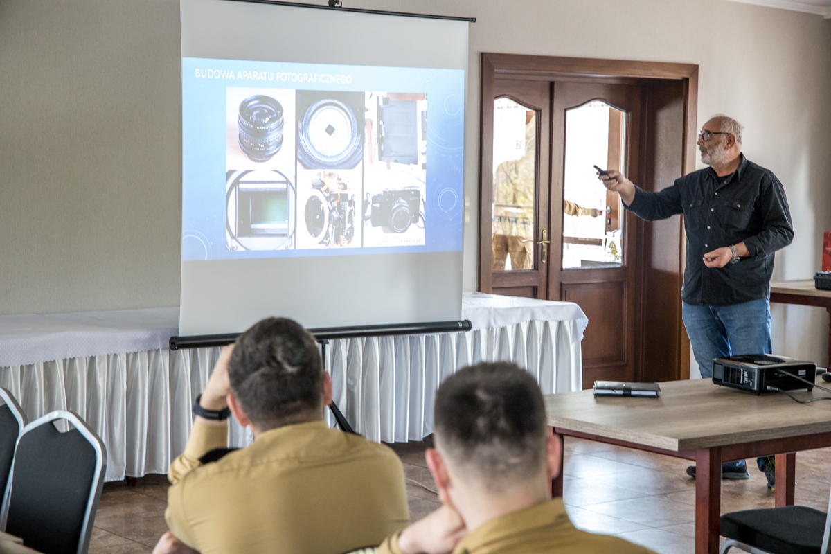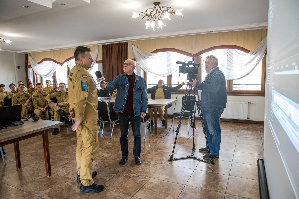 W części warsztatowej strażacy mieli okazję szlifować umiejętności wystąpień przed kamerą oraz poznać tajniki fotografii. Zaproszeni specjaliści: Wojciech Brzeszczak, Andrzej Czernik oraz Andrzej Nowak dzieląc się bagażem doświadczeń w swoich dziedzinach, ubogacili merytorycznie moduł warsztatowy narady.