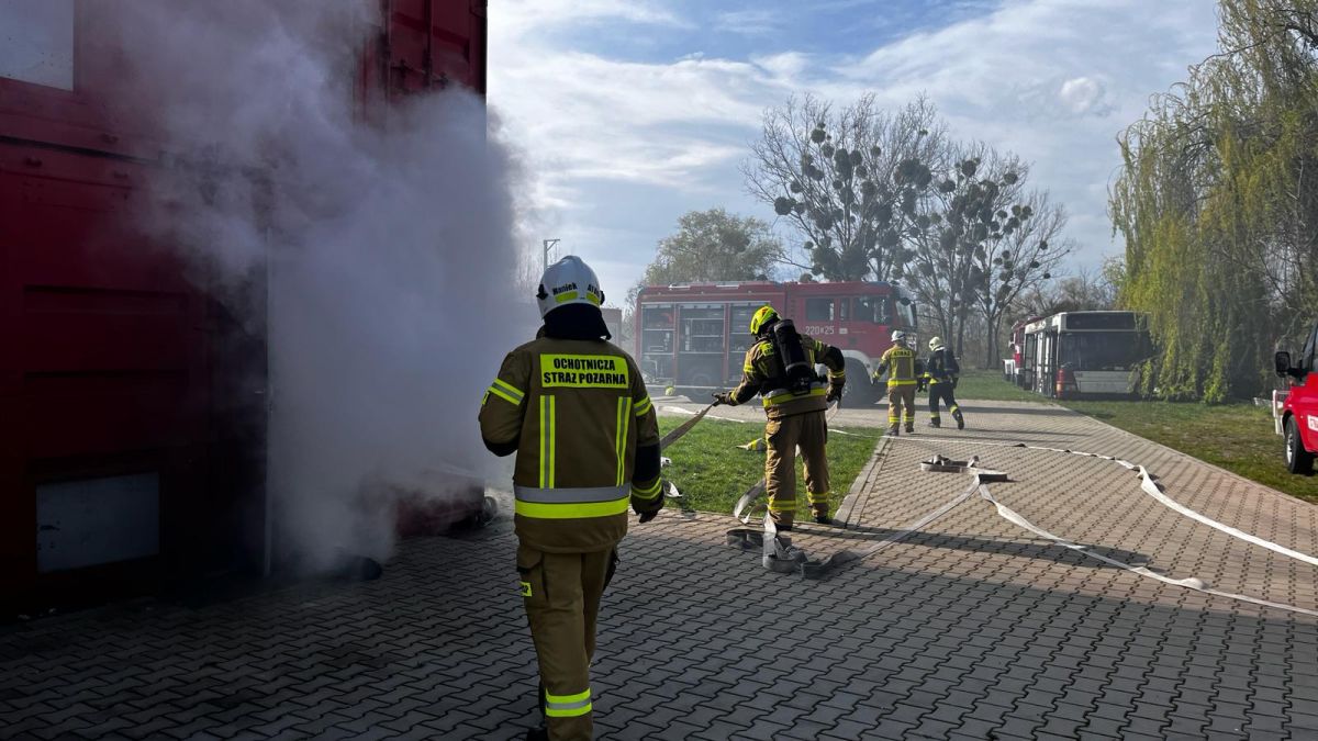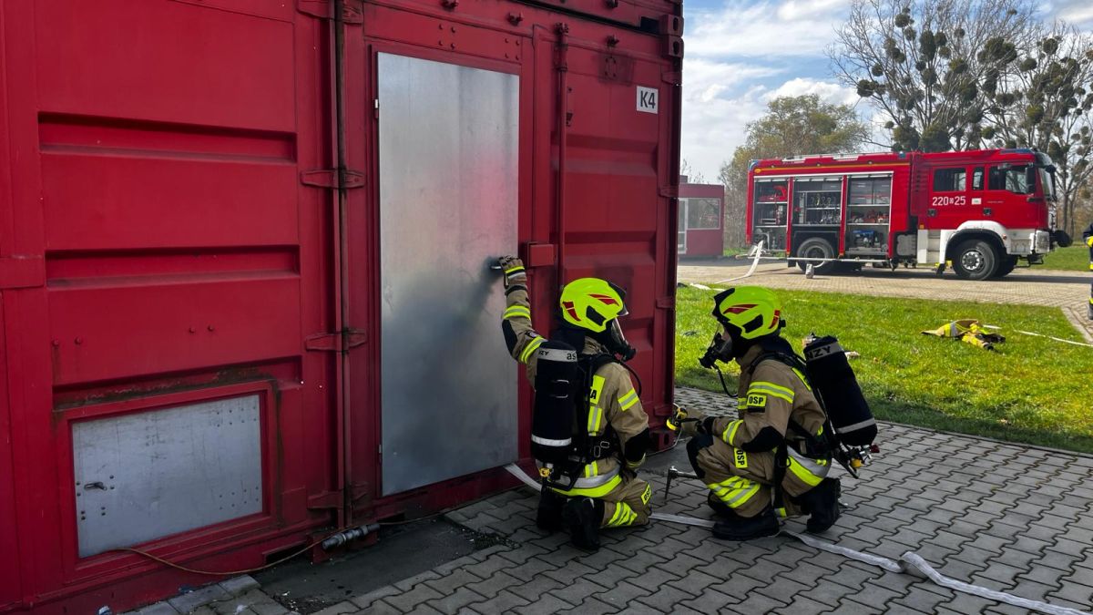 Oprócz części teoretycznej, przeprowadzono również ćwiczenia praktyczne na terenie poligonu szkoleniowego Ośrodka Szkolenia, gdzie strażacy ćwiczyli prowadzenie działań podczas pożarów wewnętrznych.