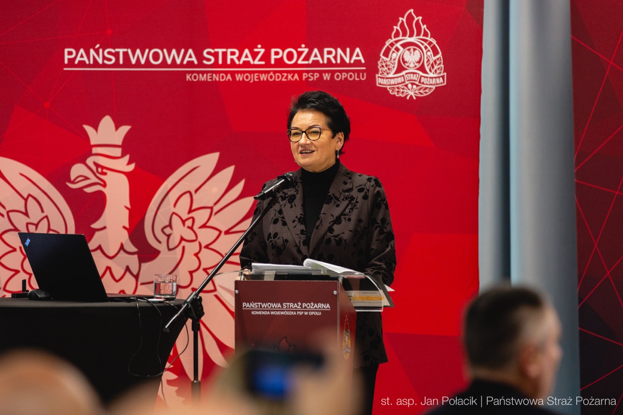 Głos zabrali m.in. Wojewoda Opolski Monika Jurek, Członek Zarządu Województwa Opolskiego Robert Węgrzyn, Prezydent Opola Arkadiusz Wiśniewski oraz Opolski Komendant Wojewódzki PSP nadbryg. Paweł Kielar.