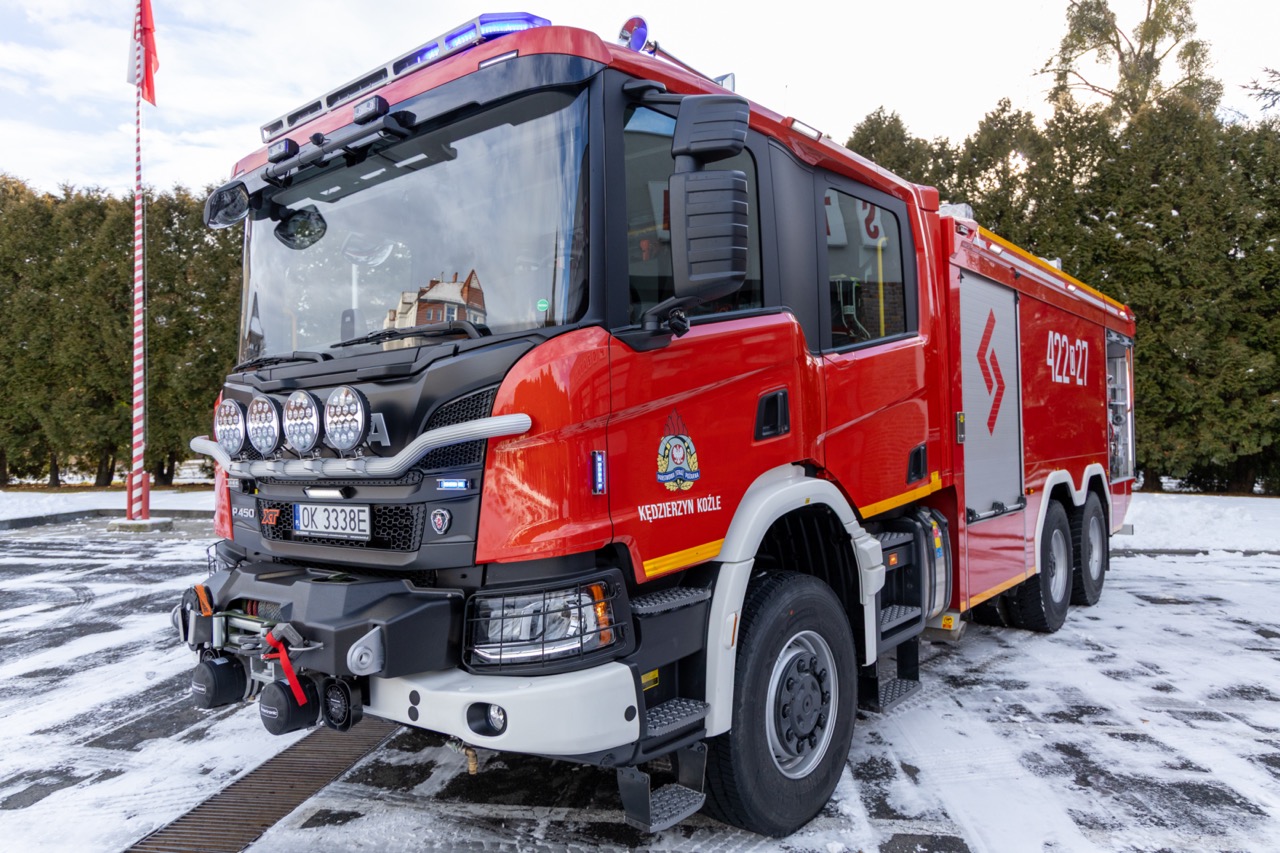 Komenda Powiatowa Państwowej Straży Pożarnej w Kędzierzynie-Koźlu wzbogaciła się o nowoczesny ciężki samochód ratowniczo-gaśniczy Scania P450 6x6, przeznaczony do działań w najtrudniejszych warunkach operacyjnych.