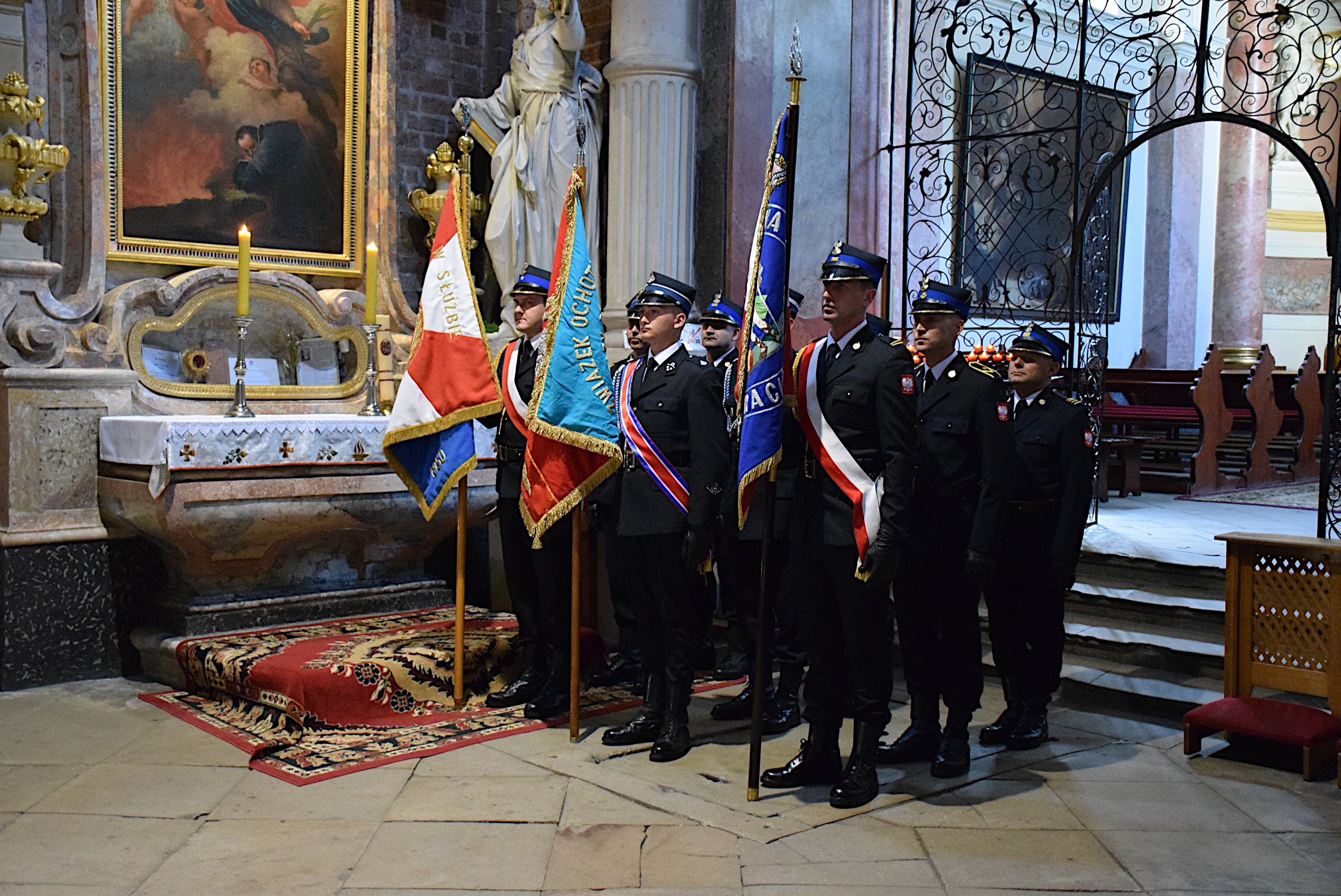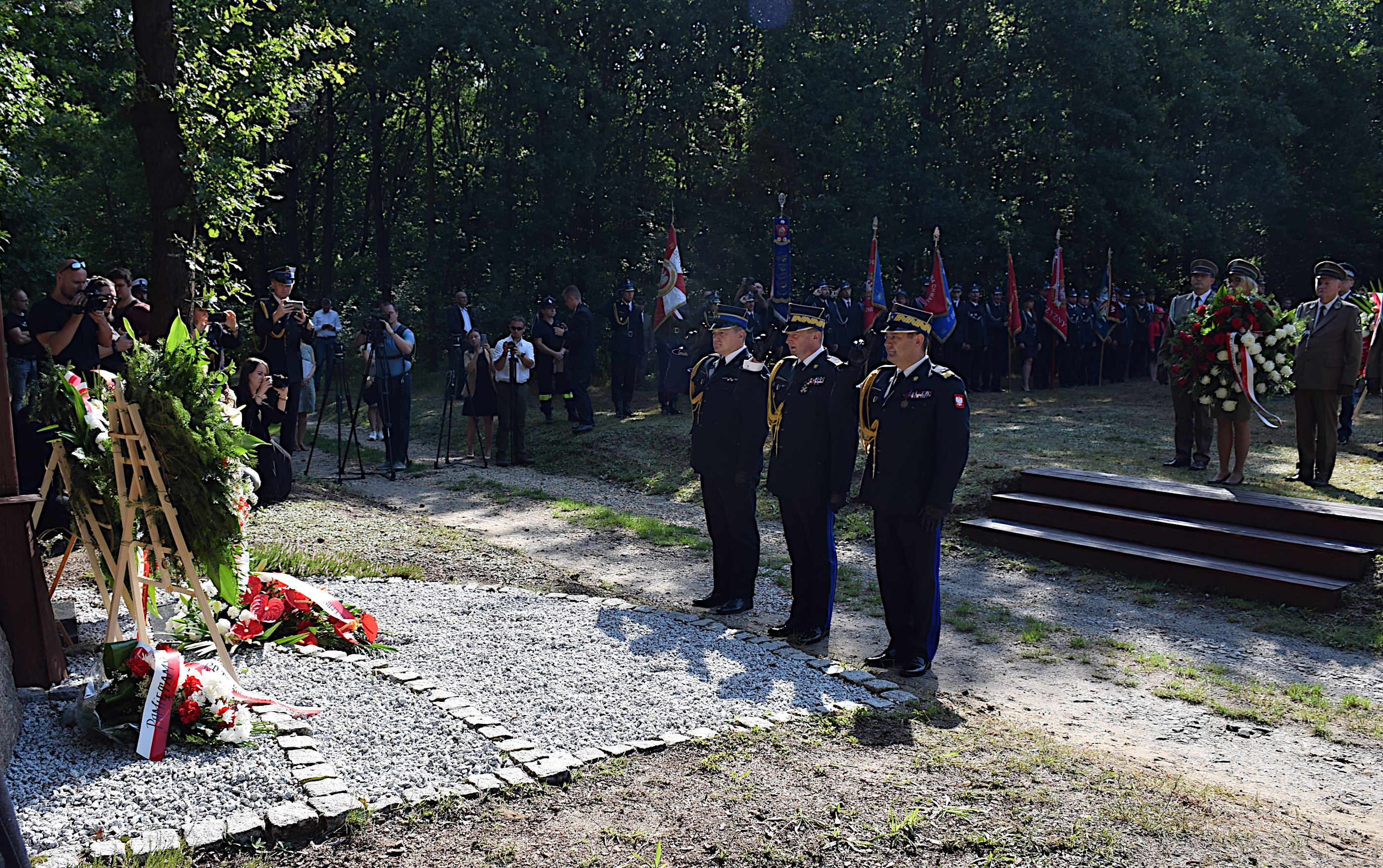 W dalszej części uroczystości oddano hołd poległym strażakom – mł. kpt. Andrzejowi Kaczynie i dh. Andrzejowi Malinowskiemu. Wieńce złożyli: