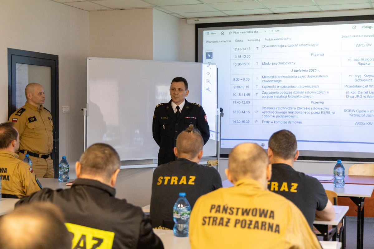 W dniach 1-3.04.2025 r. zostały zorganizowano w Ośrodku Szkolenia Komendy Wojewódzkiej PSP w Opolu pierwsze warsztaty dla dowódców i zastępców dowódców zmian, które wynikają z "Zasad organizacji doskonalenia zawodowego w PSP" zatwierdzonych przez Komendanta Głównego PSP w 2024 r.