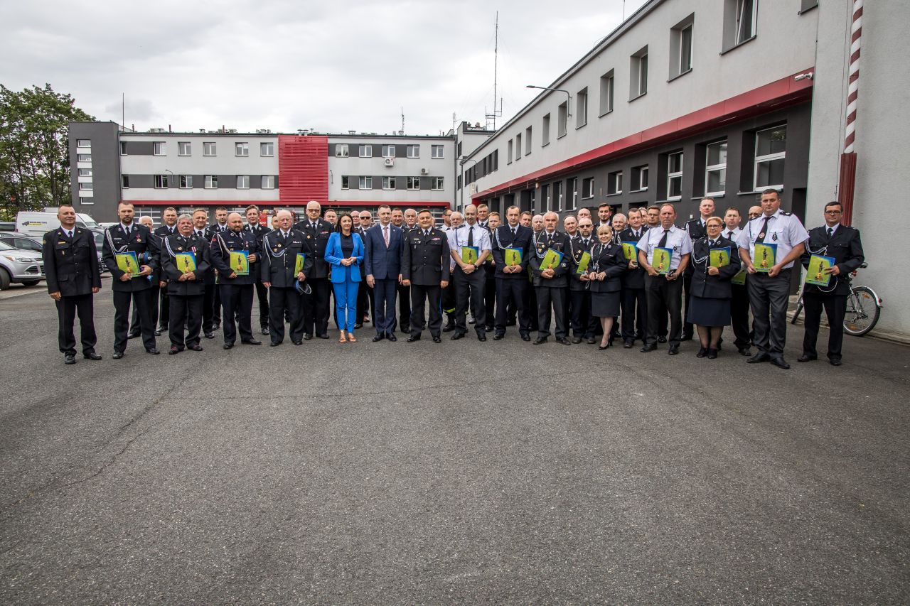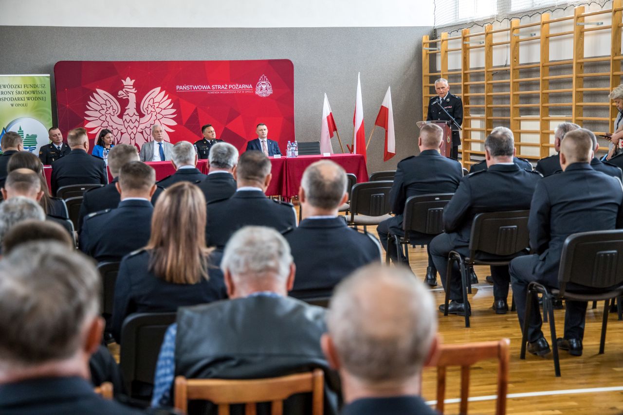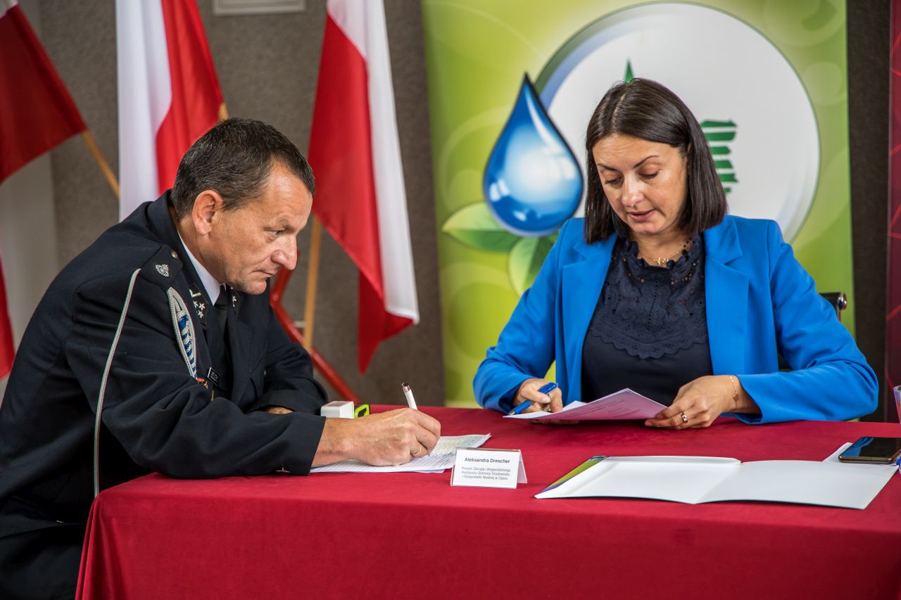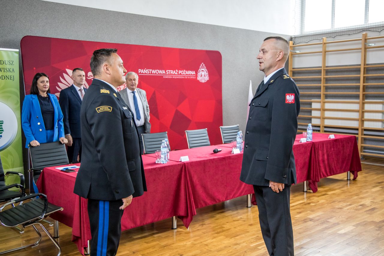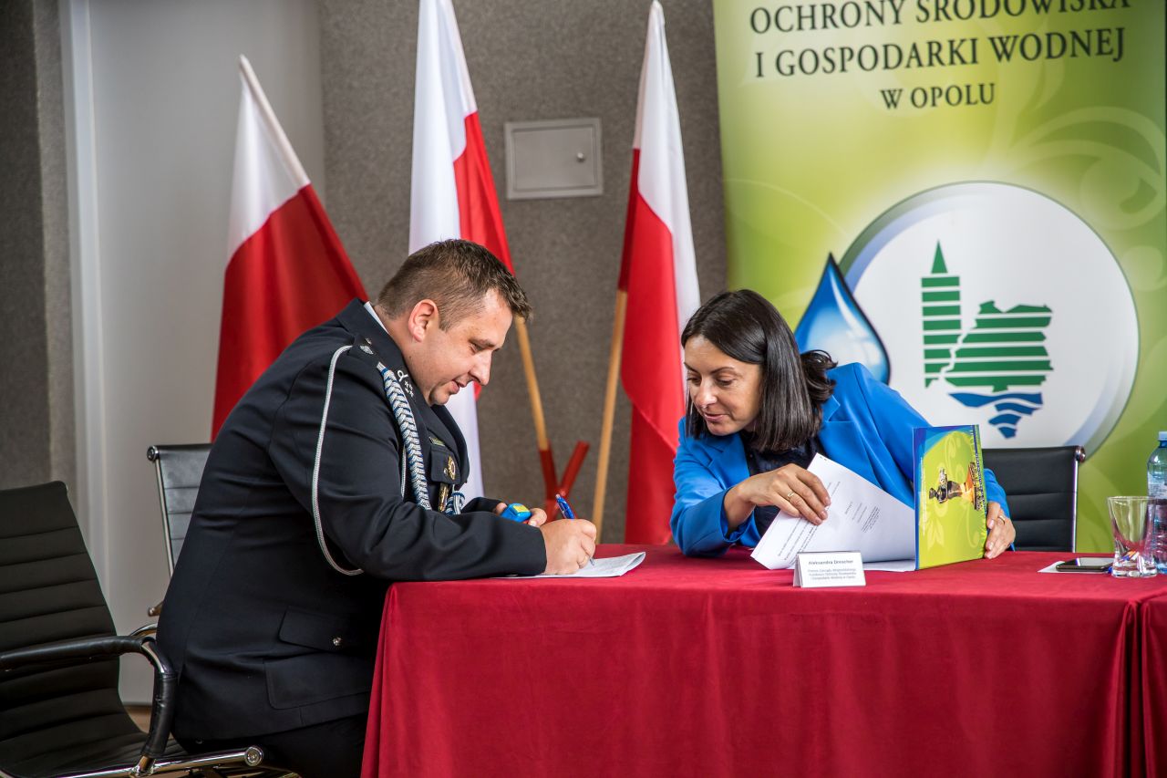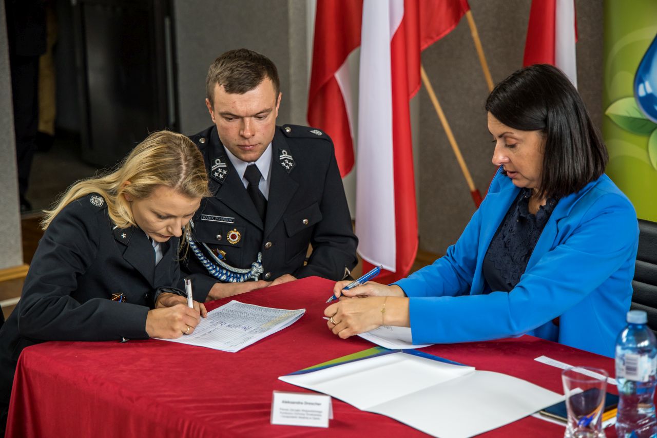 W uroczystym podpisaniu umów pomiędzy Wojewódzkim Funduszem Ochrony Środowiska i Gospodarki Wodnej w Opolu a jednostkami OSP brali udział: Pani Aleksandra Drescher Prezes Zarządu Wojewódzkiego Funduszu Ochrony Środowiska i Gospodarki Wodnej w Opolu, Pan Jerzy Naszkiewicz Zastępca Prezesa Zarządu Wojewódzkiego Funduszu Ochrony Środowiska i Gospodarki Wodnej w Opolu, Pan Sławomir Kłosowski Wojewoda Opolski, nadbryg. Krzysztof Kędryk Opolski Komendant Wojewódzki PSP, st. bryg. Arkadiusz Kuśmierski Zastępca Opolskiego Komendanta Wojewódzkiego PSP, dh Andrzej Borowski Prezes Zarządu Wojewódzkiego ZOSP RP w Opolu oraz dh Artur Gallus Wiceprezes Zarządu Wojewódzkiego ZOSP RP w Opolu.