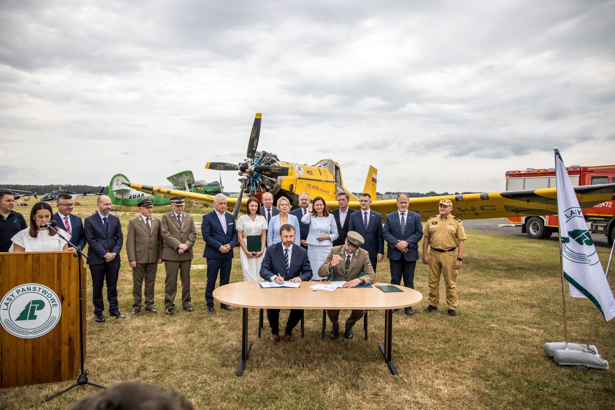 W uroczystym podpisaniu umów przez Dyrektorów RDLP w Katowicach i Wrocławiu oraz Prezesów czterech WFOŚiGW wzięli udział: Pani Anna Moskwa Minister Klimatu i Środowiska, Pan Józef Kubica Dyrektor Generalny Lasów Państwowych, Pani Violetta Porowska Poseł na Sejm RP, Pan Sławomir Kłosowski Wojewoda Opolski oraz nadbryg. Krzysztof Kędryk Opolski Komendant Wojewódzki PSP.