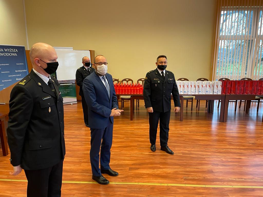 22 listopada 2021 roku Opolski Komendant Wojewódzki PSP w Opolu st. bryg. Krzysztof Kędryk, Zastępca Opolskiego Komendanta Wojewódzkiego PSP w Opolu st. bryg. Arkadiusz Kuśmierski oraz Komendant Powiatowy PSP w Nysie bryg. Paweł Gotkowski i Dowódca JRG w Nysie kpt. Dariusz Pryga spotkali się z przedstawicielami władz uczelni oraz studentami Państwowej Wyższej Szkoły Zawodowej w Nysie, którzy pomagali przy organizacji ćwiczeń krajowych pk. „Opolskie 2021”.