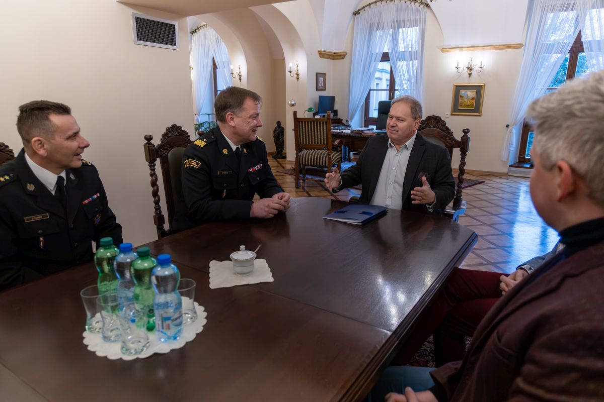 Nadbryg. Paweł Kielar Opolski Komendant Wojewódzki Państwowej Straży Pożarnej w obecności st. bryg. Piotra Dudka Zastępcy Opolskiego Komendanta Wojewódzkiego Państwowej Straży Pożarnej podpisał porozumienie o współpracy z prof. dr. hab. Jackiem Lipokiem Rektorem Uniwersytetu Opolskiego w obecności dr. hab. Roberta Geislera prof. UO i dr. Bartosza Maziarza z Katedry Zarządzania i Polityk Publicznych w Instytucie Nauk o Polityce i Administracji Uniwersytetu Opolskiego.