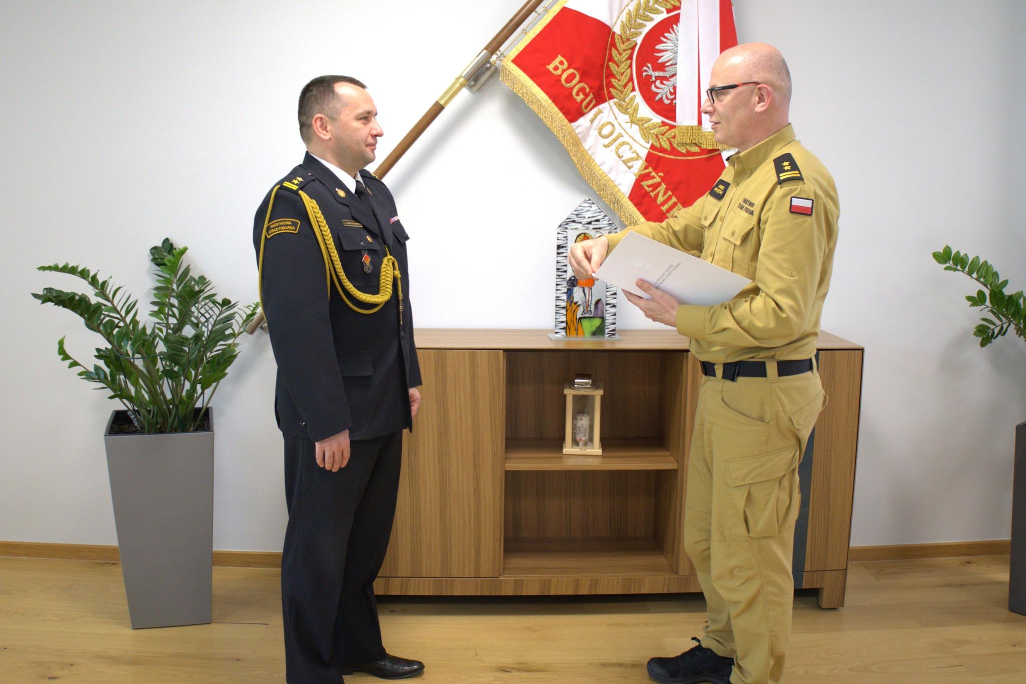 Decyzje personalne w obecności st. bryg. Pawła Kielara Opolskiego Komendanta Wojewódzkiego PSP wręczył w siedzibie Komendy Głównej PSP Zastępca Komendanta Głównego PSP bryg. Paweł Frysztak.
