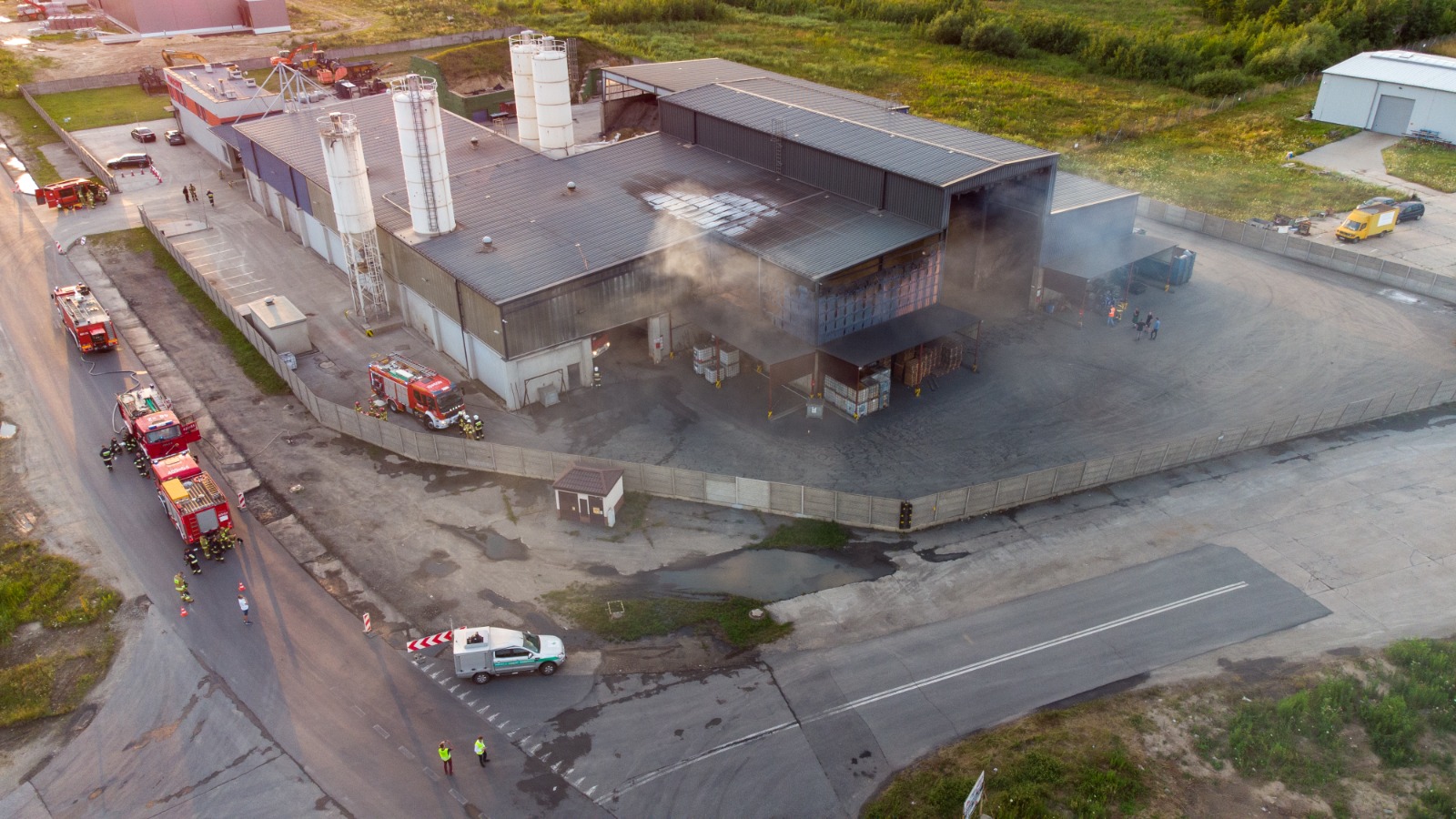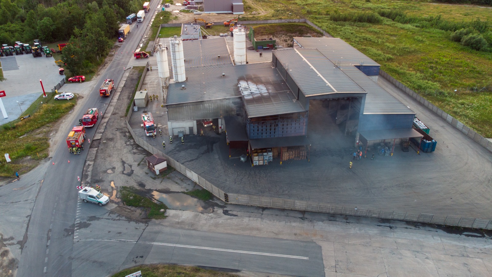 Pożar hali magazynowej zakładu odzysku odpadów nieorganicznych