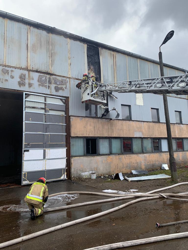 Kierujący działaniem ratowniczym w wyniku rozpoznania stwierdził, że pożarem objęta jest ściana zewnętrzna (wypełnienie płyty warstwowej) budynku hali.