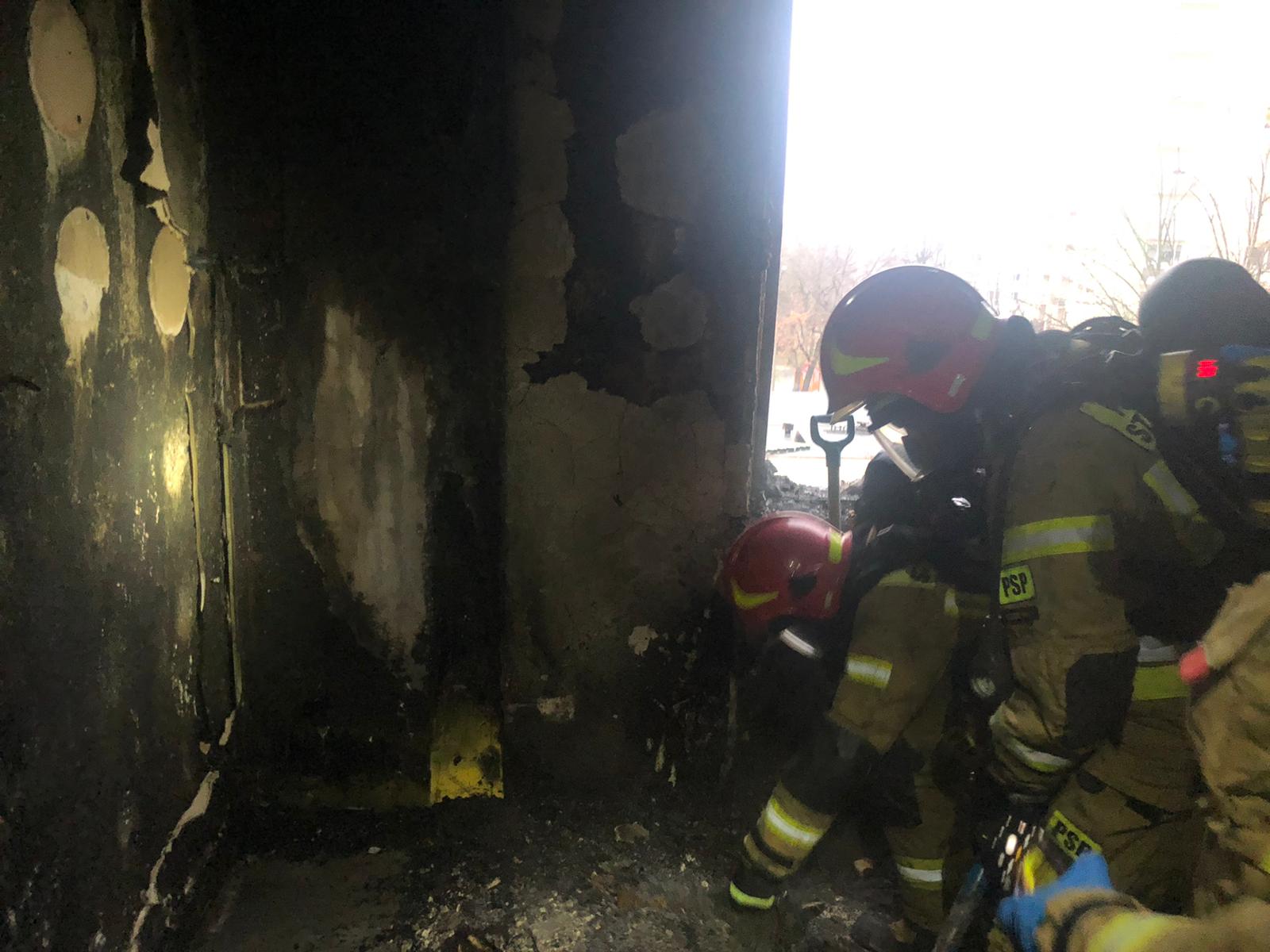 Po dojeździe pierwszych zastępów i rozpoznaniu KDR stwierdził, że pożar ma miejsce w mieszkaniu na trzecim piętrze i rozprzestrzenił się na piętro czwarte. Strażacy ewakuowali wszystkie osoby wraz z psem – bezpośrednio zagrożone pożarem. W kierunku pożaru podano dwa prądy wody w natarciu.