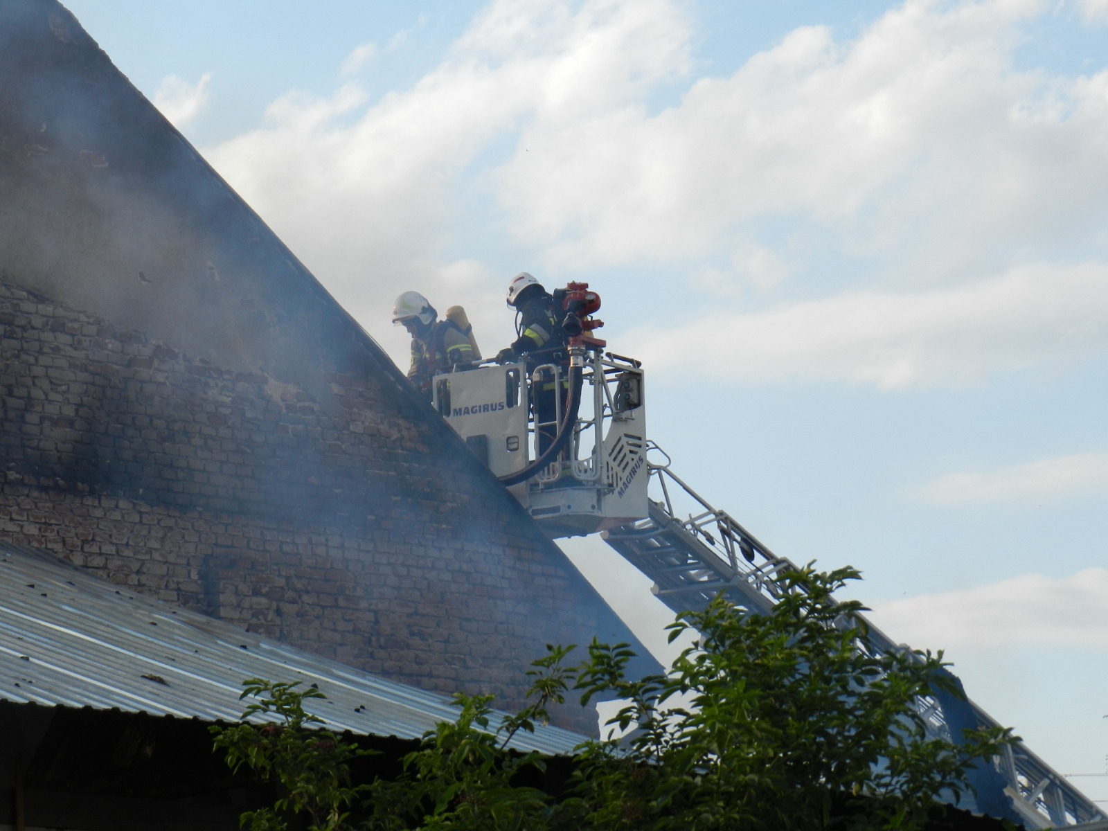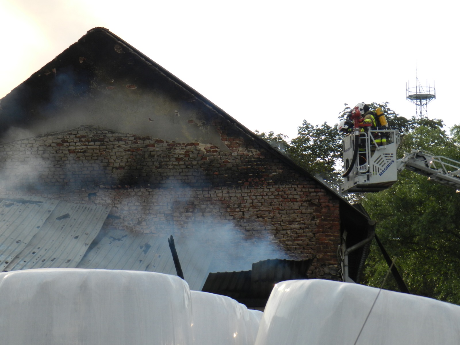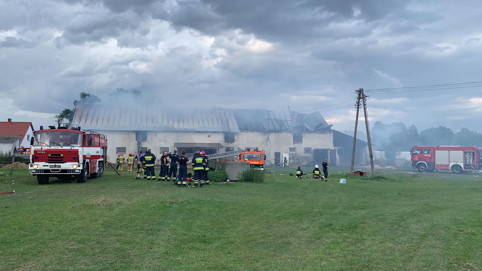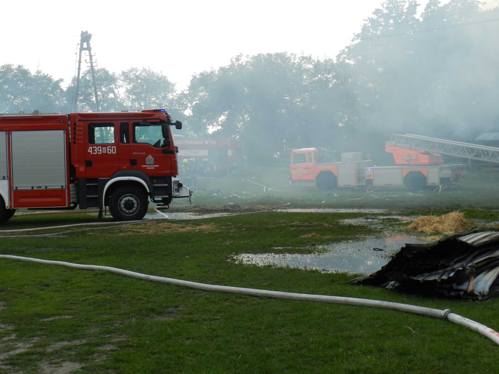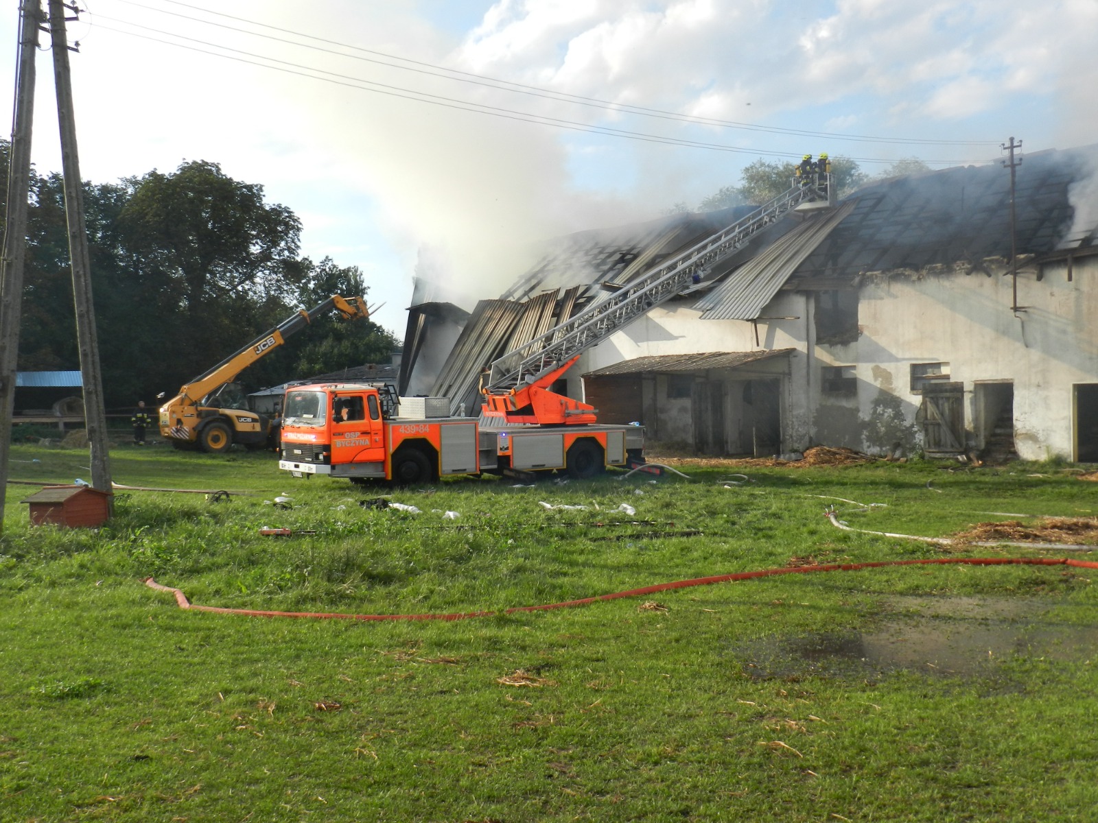 Po przybyciu na miejsce, kierujący działaniem ratowniczym w wyniku rozpoznania stwierdził, że pali się poddasze wraz ze składowaną wewnątrz słomą w budynku stajni o wymiarach 40x20 metrów, a z wnętrza obiektu ewakuowano zwierzęta przed przybyciem jednostek ochrony przeciwpożarowej.