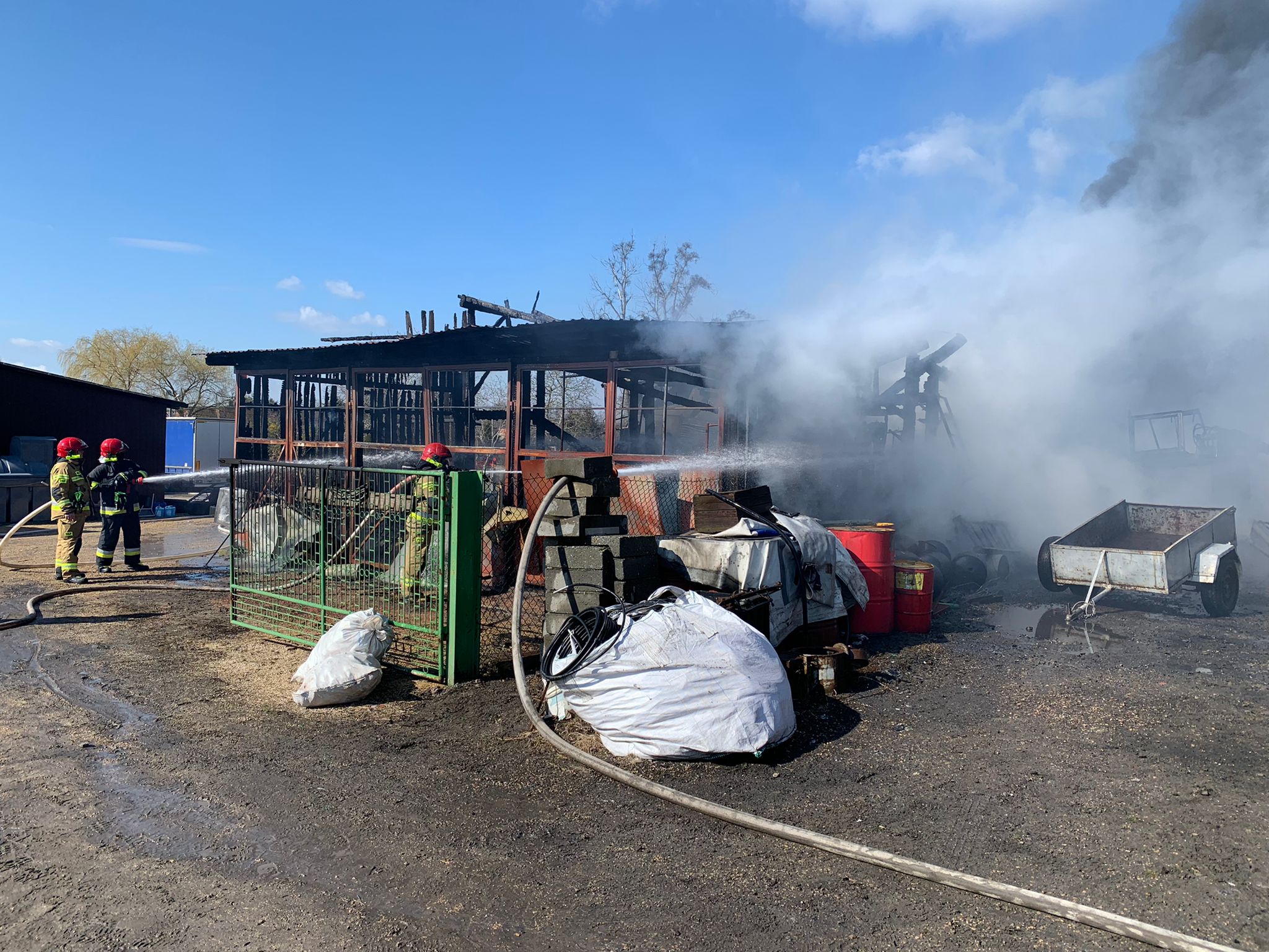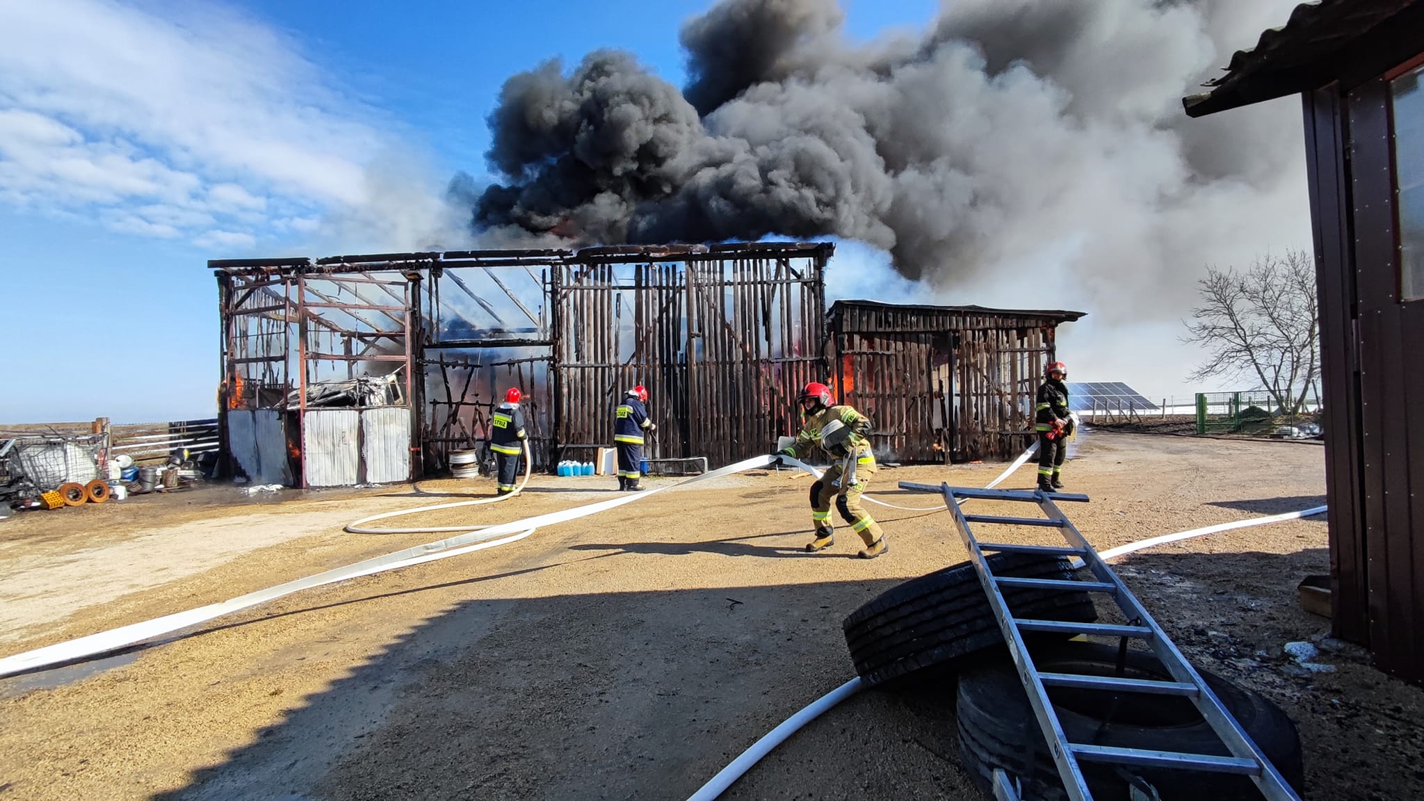 4 kwietnia 2022 roku dyżurny Stanowiska Kierowania Komendanta Powiatowego Państwowej Straży Pożarnej w Kluczborku odebrał o godzinie 9:45 zgłoszenie o pożarze stodoły w miejscowości Biadacz.