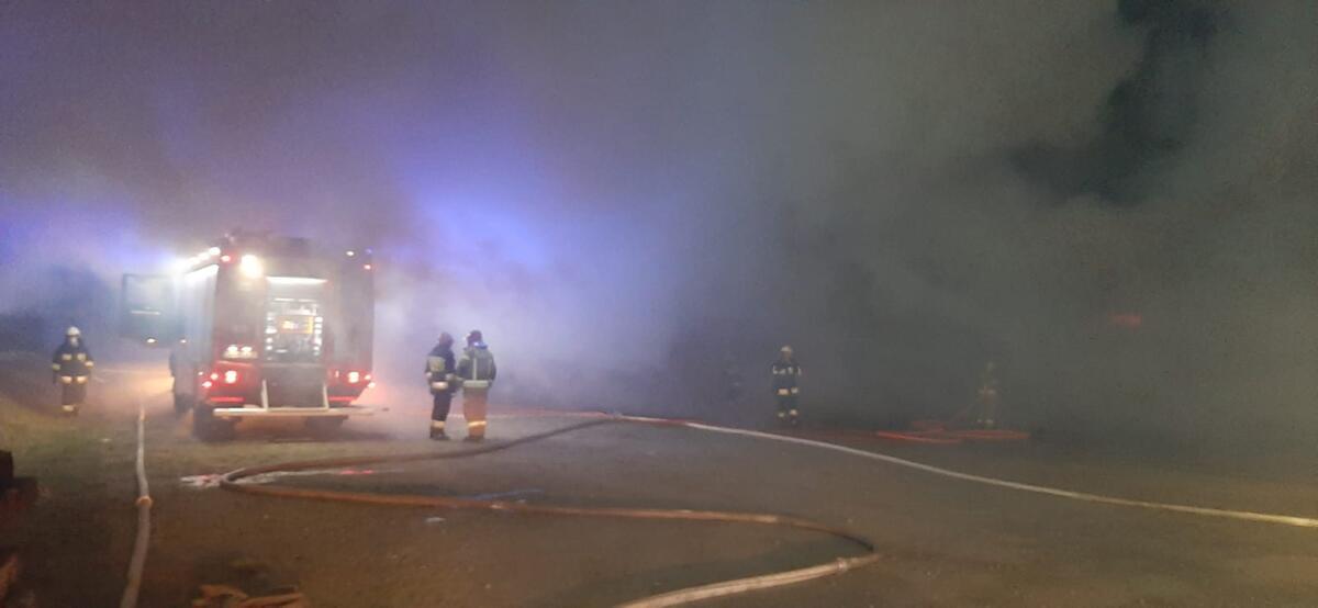 Po przybyciu na miejsce pierwszego zastępu, kierujący działaniem ratowniczym w wyniku rozpoznania stwierdził, że doszło do pożaru hali o powierzchni około 600 m2 wraz z przyległą częścią biurową oraz pożaru budynku magazynu.