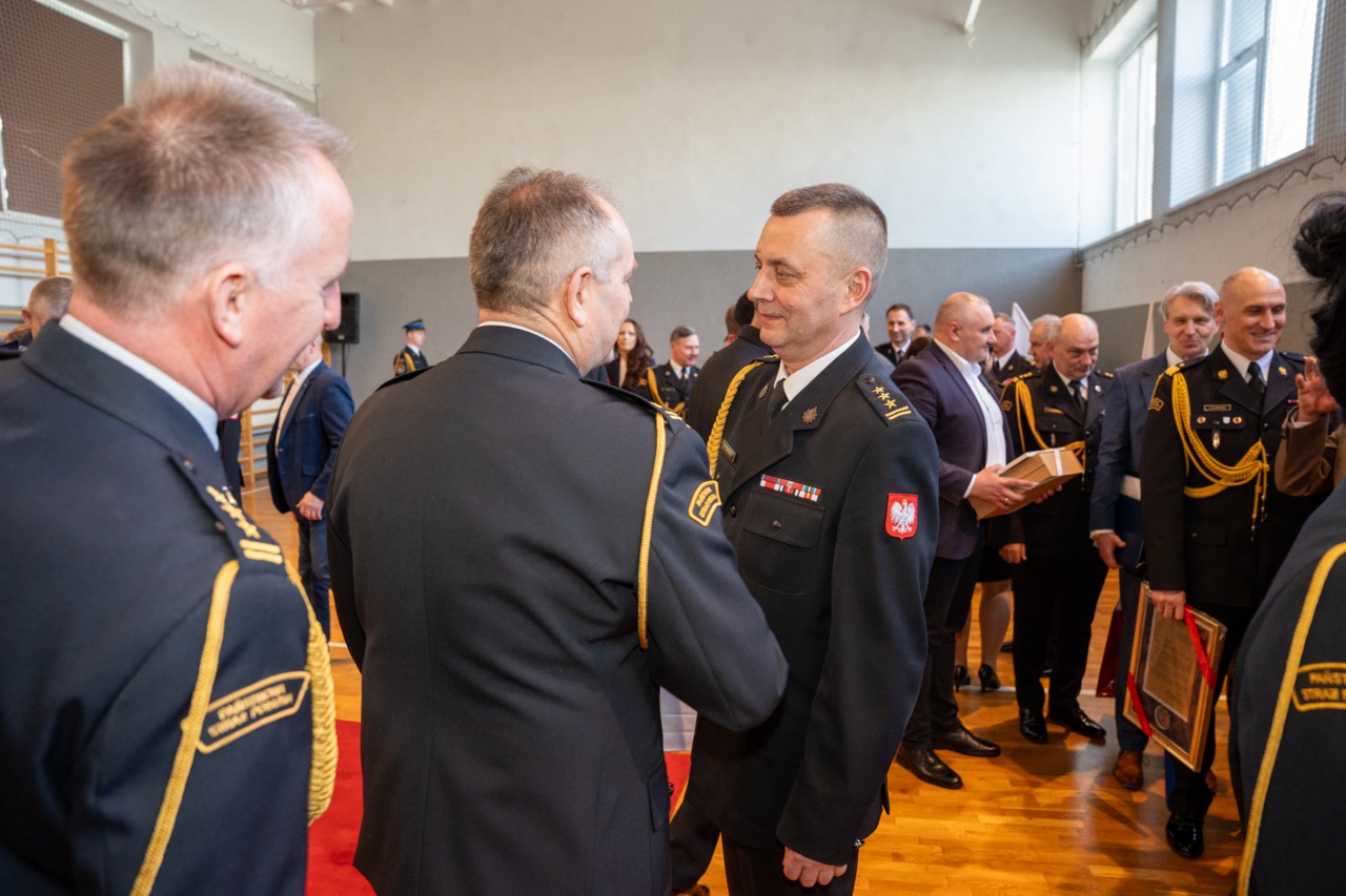 Nadbryg. Wojciech Kruczek oraz zgromadzeni na sali goście w swoich wystąpieniach podziękowali za dotychczasowe lata służby nadbryg. Pawła Kielara, jednocześnie życząc powodzenia st. bryg. Arkadiuszowi Kuśmierskiemu.