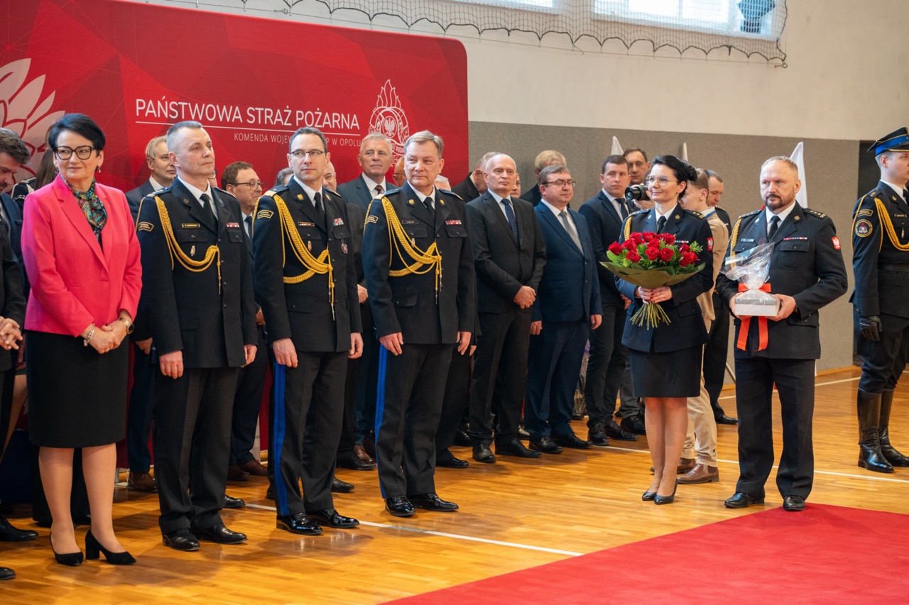 W uroczystości udział wzięli m.in.: Wojewoda Opolska wraz z Wicewojewodą, Komendant Główny Państwowej Straży Pożarnej, Marszałek Województwa Opolskiego, Rektor-Komendant Akademii Pożarniczej, komendanci wojewódzcy PSP z województw dolnośląskiego, łódzkiego i śląskiego, a także komendanci szkół Państwowej Straży Pożarnej.