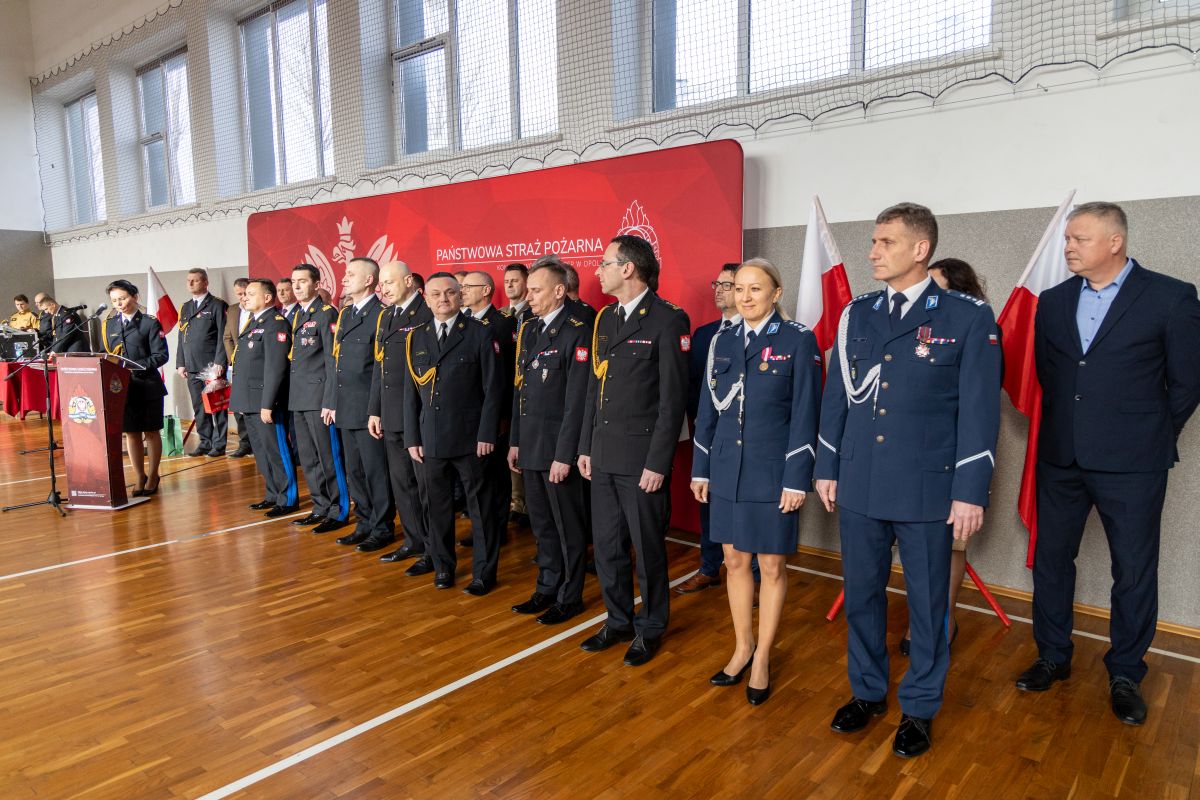 Uroczystość swoją obecnością zaszczycili: Pan Piotr Pośpiech Wicewojewoda Opolski, st. bryg. Wojciech Kruczek p.o. Śląskiego Komendanta Wojewódzkiego PSP, st. bryg. Janusz Drozda p.o. Lubuskiego Komendanta Wojewódzkiego PSP, st. bryg. dr Damian Hajdas p.o. Komendanta Centralnej Szkoły PSP w Częstochowie, bryg. Marek Radosz Komendant Miejski PSP w Częstochowie, insp. Magdalena Nguyen-Fudala Komendant Wojewódzka Policji w Opolu, ppłk. Jerzy Łukasik Komendant Placówki Straży Granicznej w Opolu, ppłk. Marian Brandt Dowódca 55. Batalionu Remontowego, ppłk. Roman Kuchtiak Dowódca 172. Batalionu Lekkiej Piechoty, płk. Romuald Sibiela Naczelnik Wydziału Zamiejscowego w Opolu Delegatury ABW, Pan Andrzej Borowski Prezes Zarządu Wojewódzkiego ZOSP RP, Pan Wiesław Skrzypek Nadleśniczy Nadleśnictwa Tułowice, Pan Waldemar Drożdżol Prezes Zarządu Głównego Korporacji Kominiarzy Polskich, bryg. w st. spocz. ks. Józef Urban, ks. Tomasz Józkowicz, Pan Jerzy Naszkiewicz Zastępca Prezesa Zarządu Wojewódzkiego Funduszu Ochrony Środowiska i Gospodarki Wodnej w Opolu, Pan Krzysztof Pasternak Zastępca Dyrektora Oddziału Okręgowego NBP w Opolu, Pan Piotr Tarapata Dyrektor Wydziału Bezpieczeństwa i Zarządzania Kryzysowego OUW, Pan Ryszard Sajkowski Prezes Zarządu Wojewódzkiego Związku Emerytów i Rencistów Pożarnictwa RP w Opolu, kadra Komendy Wojewódzkiej PSP w Opolu oraz Komendanci Powiatowi i Miejski PSP województwa opolskiego.