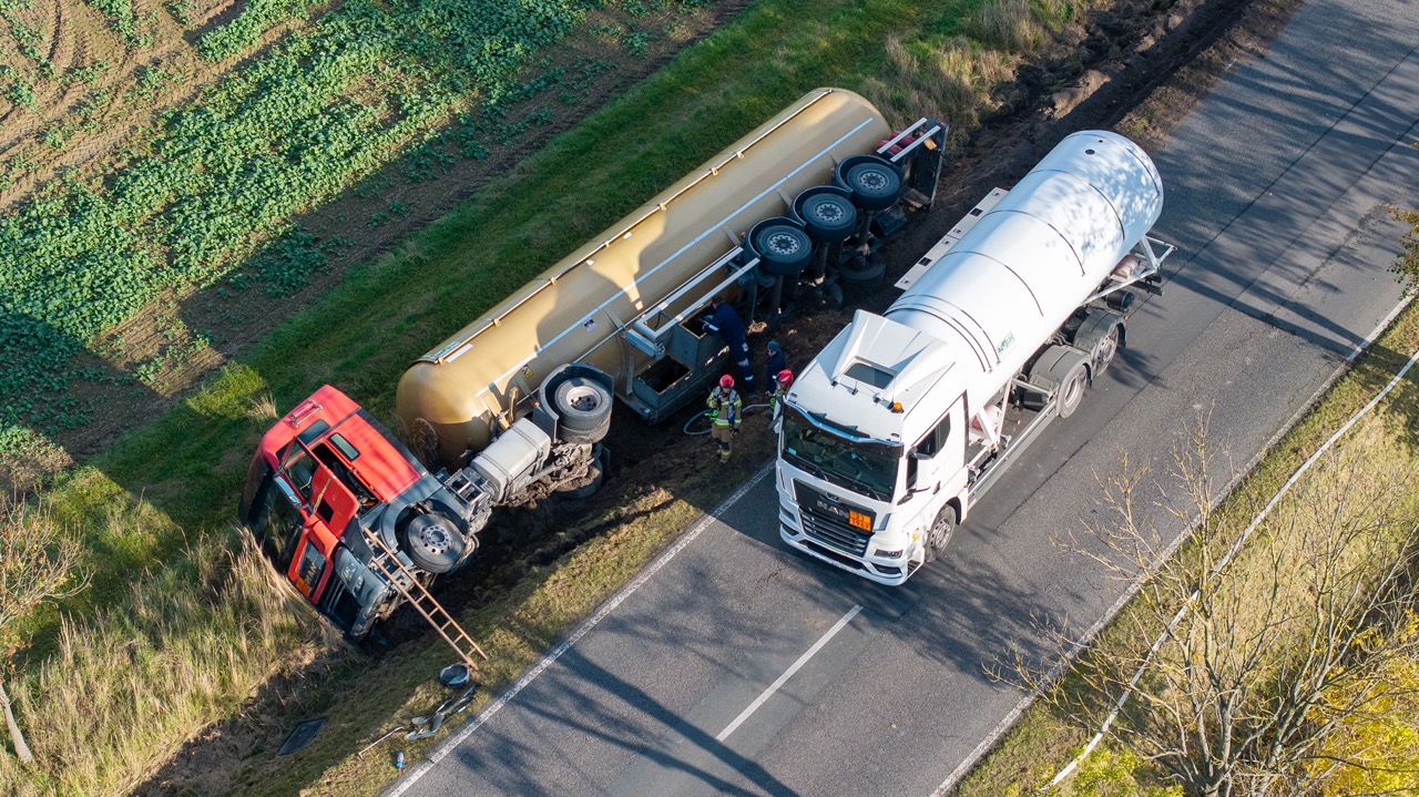 Przewrócona cysterna w Kuniowie