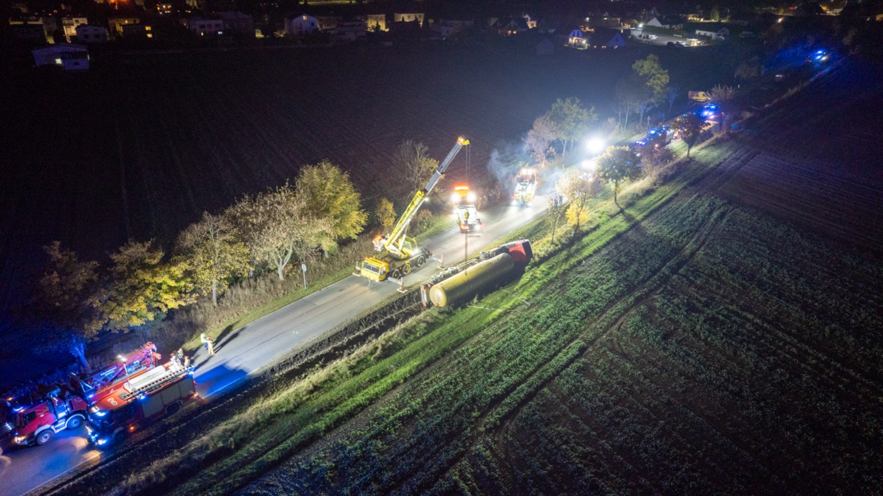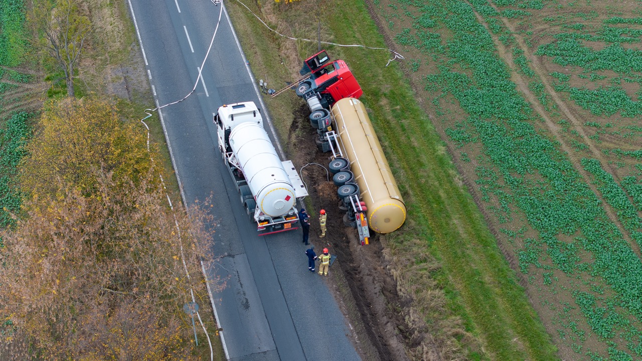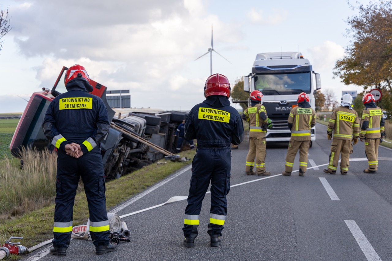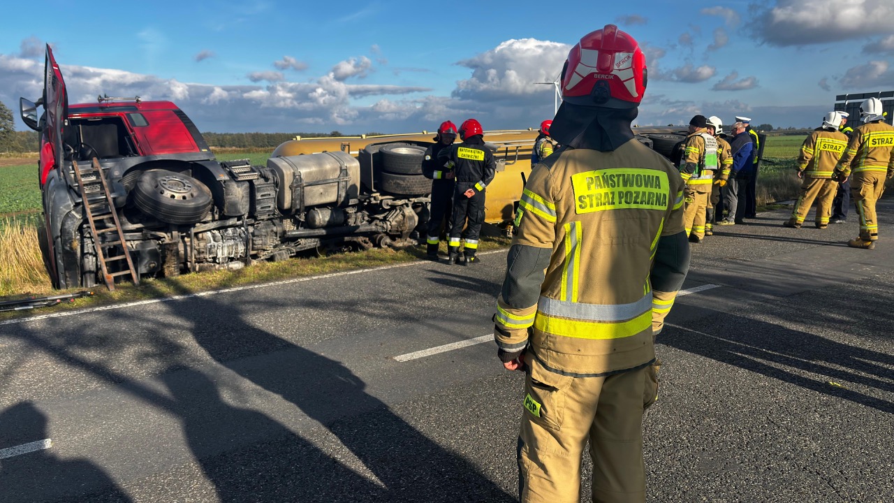 15 października 2025 roku o godzinie 13:40 do Stanowiska Kierowania Komendanta Powiatowego PSP w Kluczborku wpłynęło zgłoszenie o samochodzie ciężarowym z naczepą typu cysterna, którym kierowca wjechał do rowy. Pojazd, w którym przewożony był eter dimetylowy leżał na boku - nie doszło do rozszczelnienia cysterny.