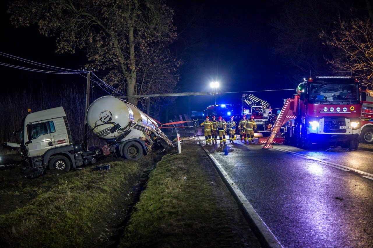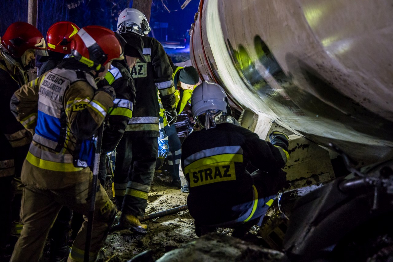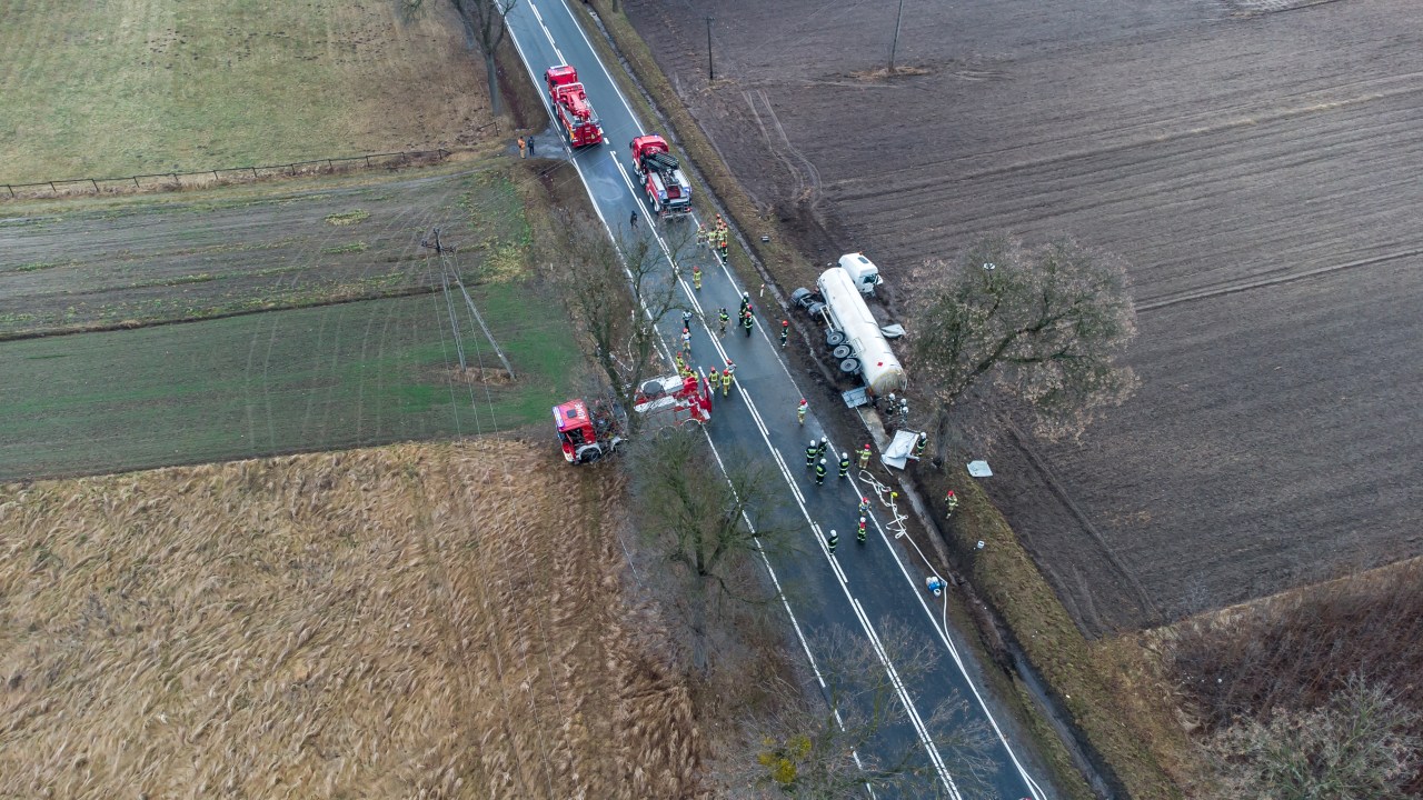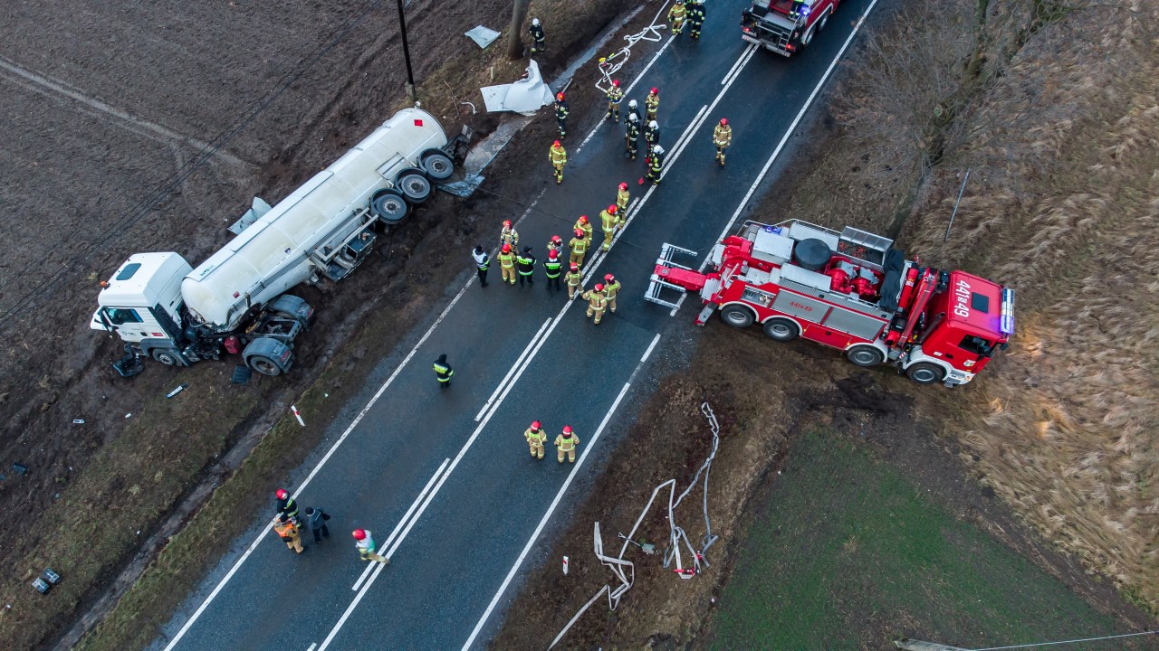 Przewrócona cysterna z propanem