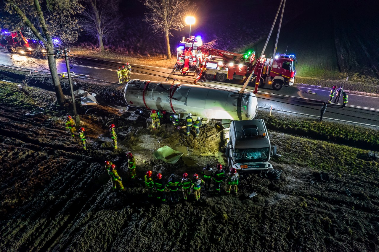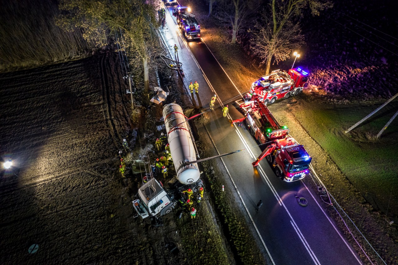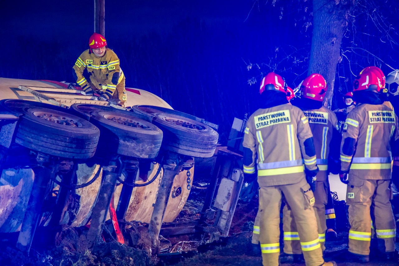 Przewrócona cysterna z propanem