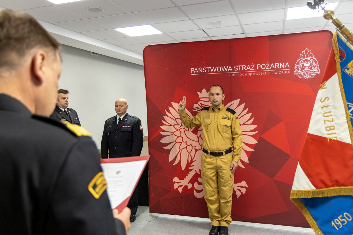 4 lipca 2025 roku w siedzibie Komendy Wojewódzkiej PSP w Opolu słowa roty ślubowania wypowiedział str. Andrzej Łukaszczykiewicz.